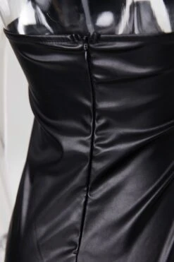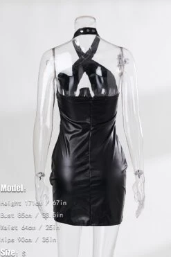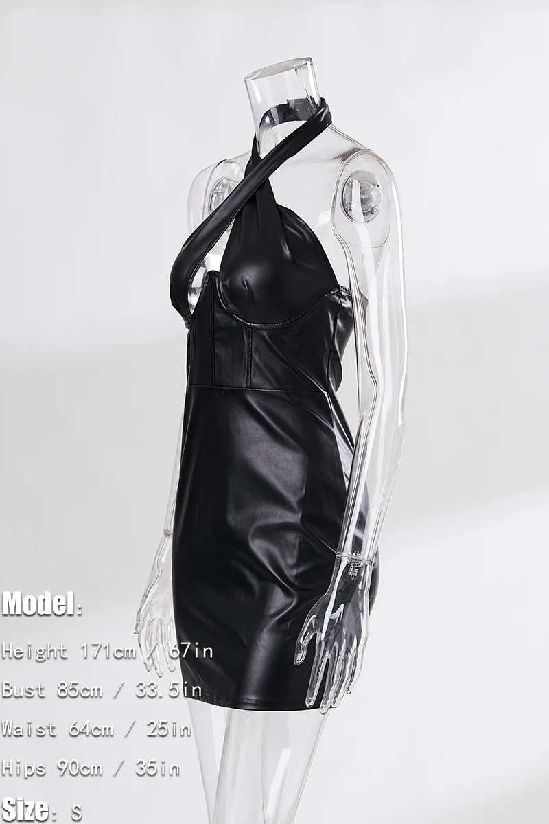 Slight stretch pu hollow zip-up halter neck slim sexy mini dress(with underwire)