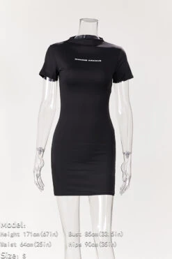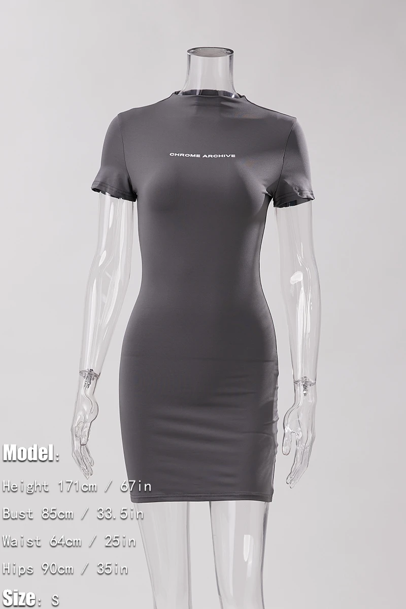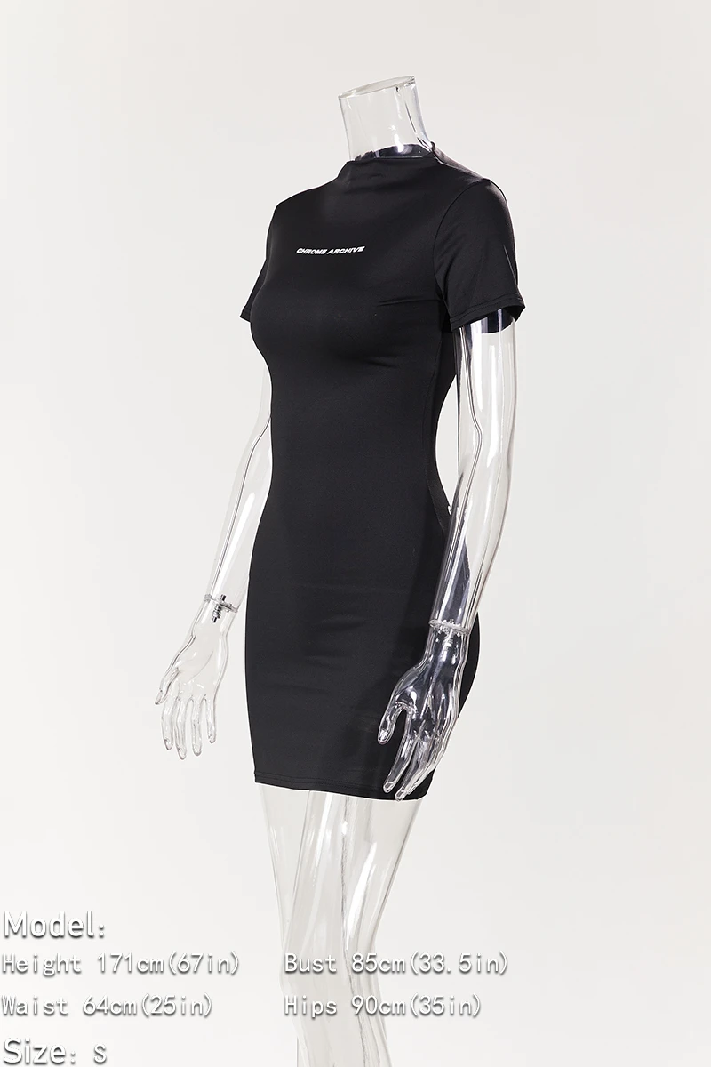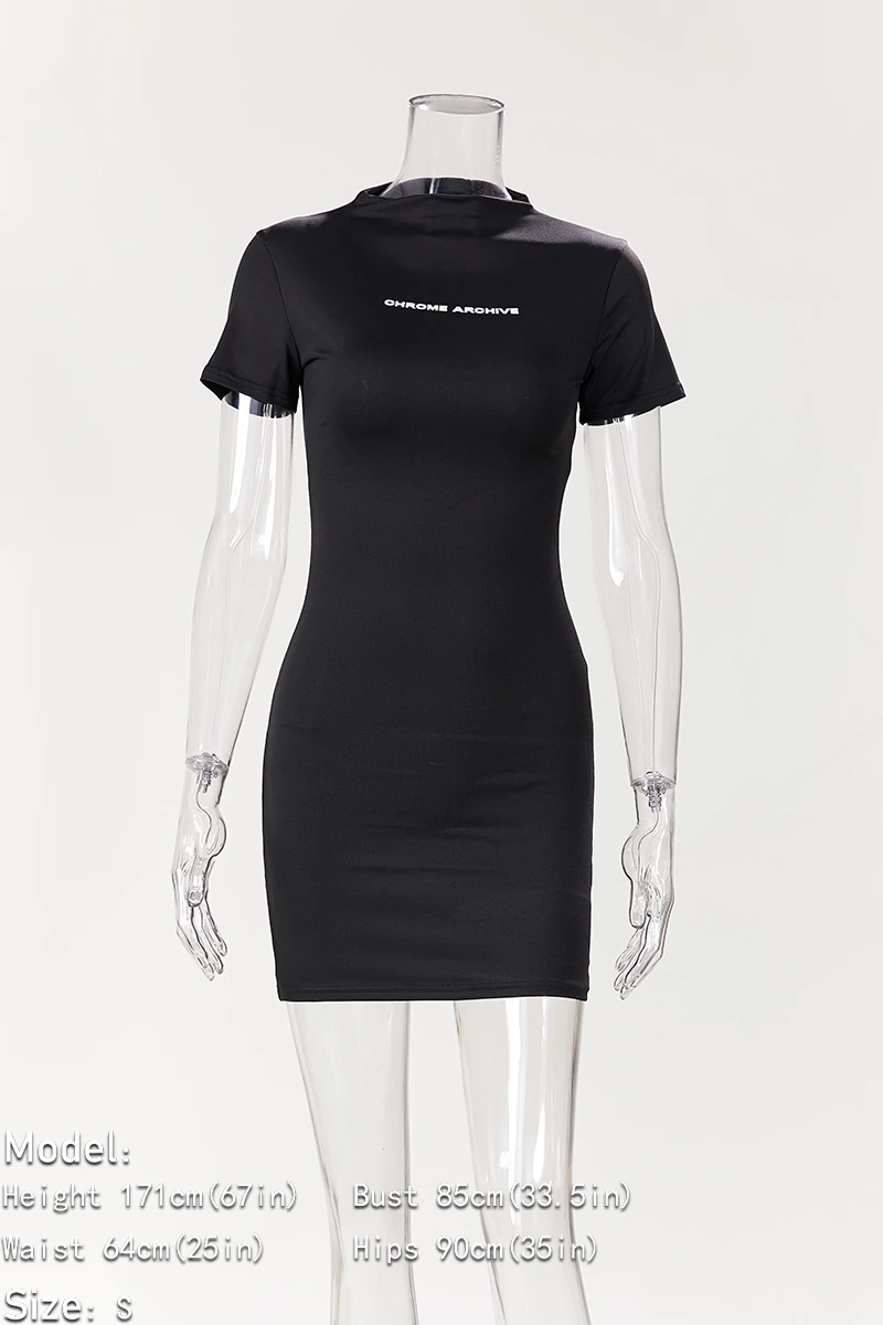 Slight stretch simple 3-colors letter printing slim stylish sexy mini dress