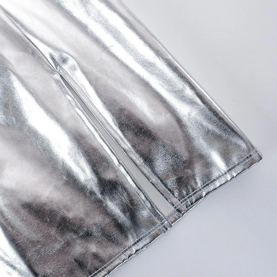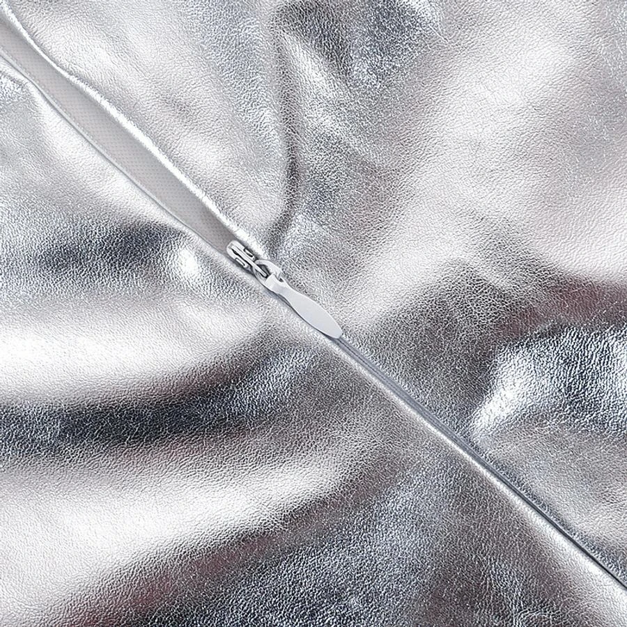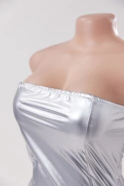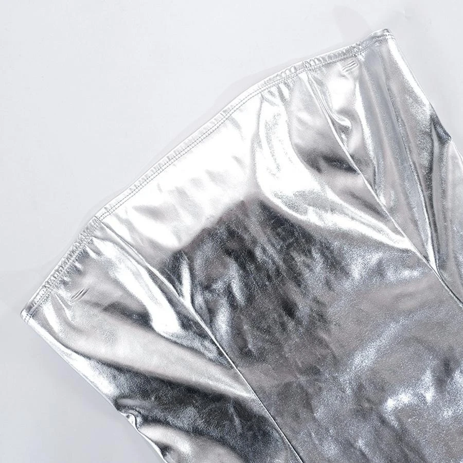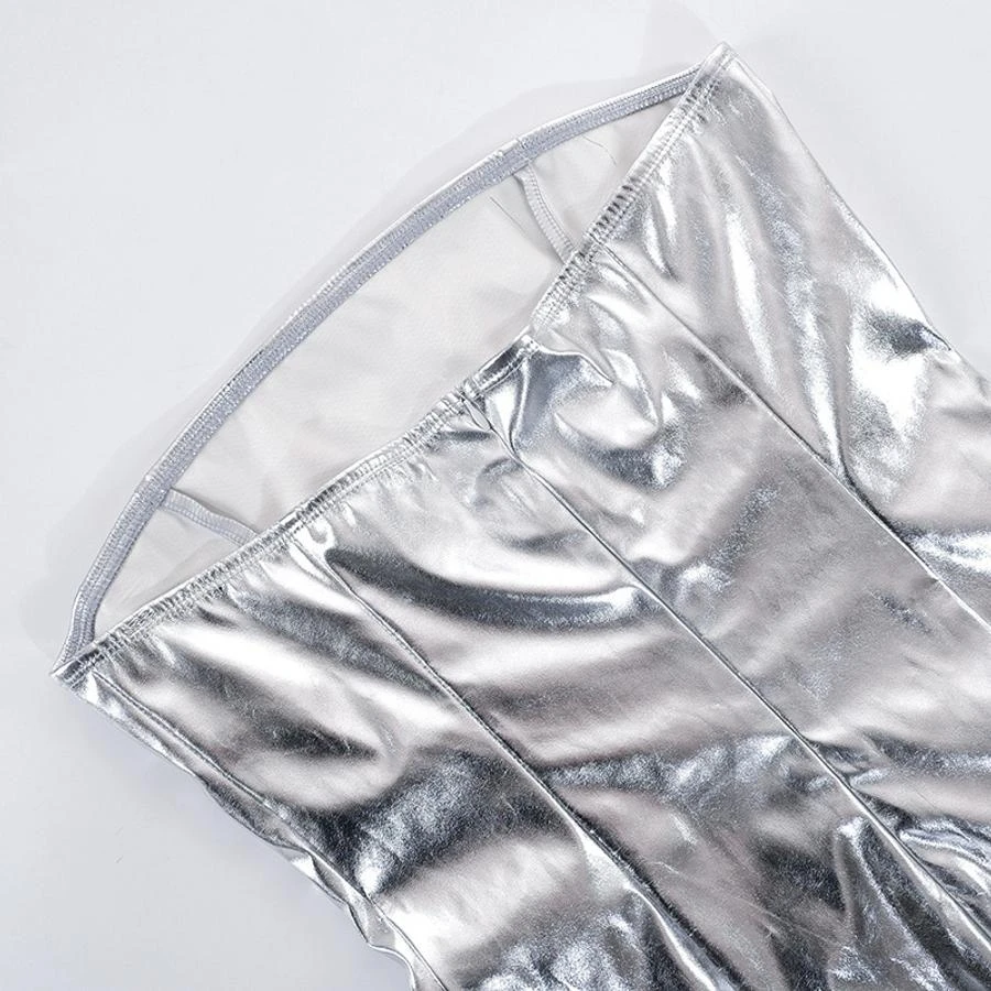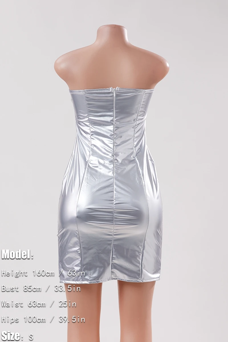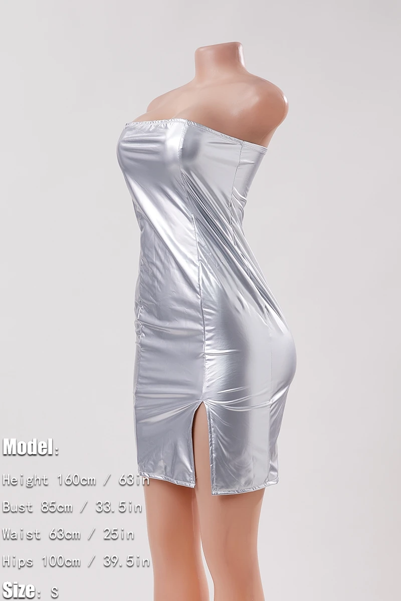 Slight stretch simple solid color pu slim strapless slit zip-up sexy mini dress