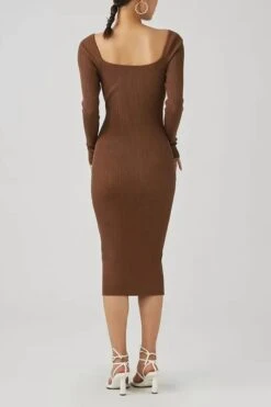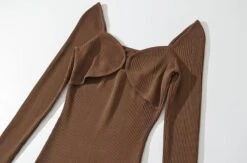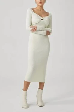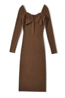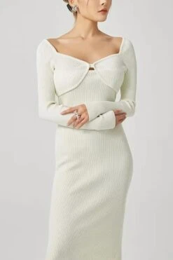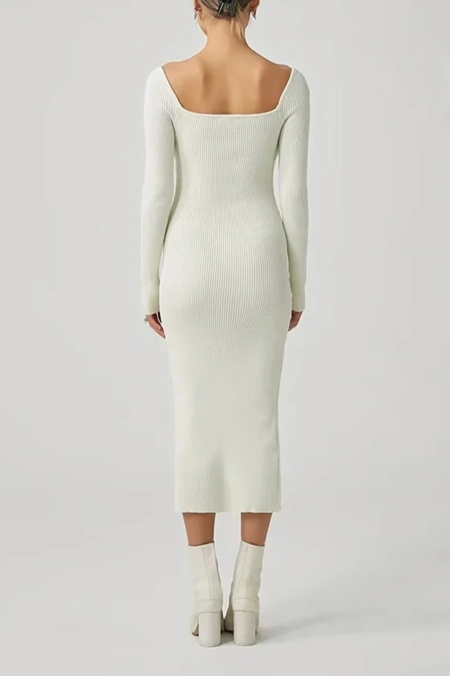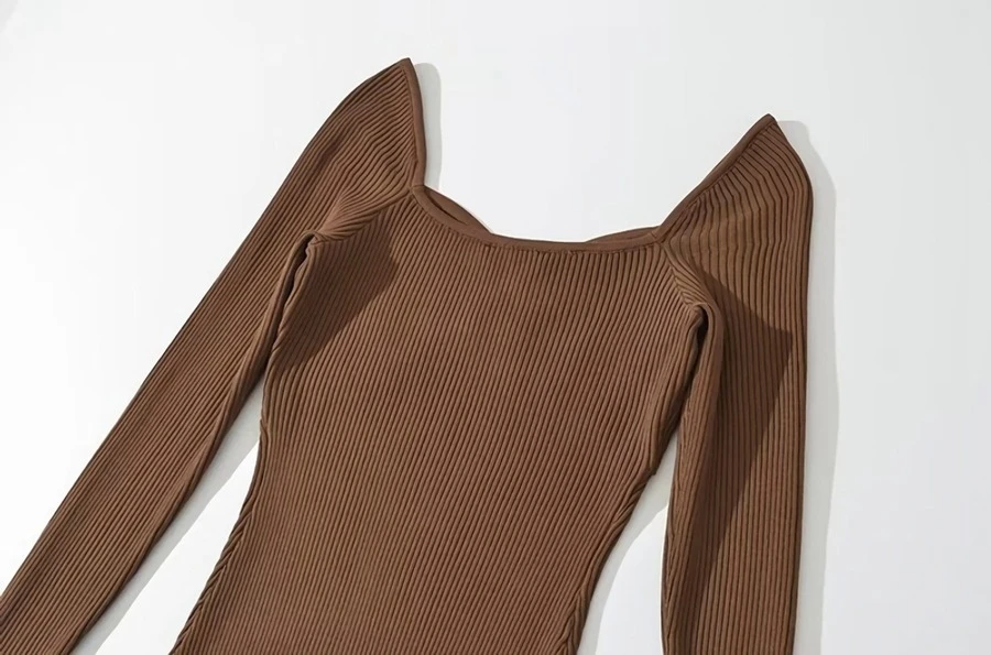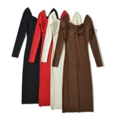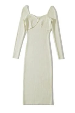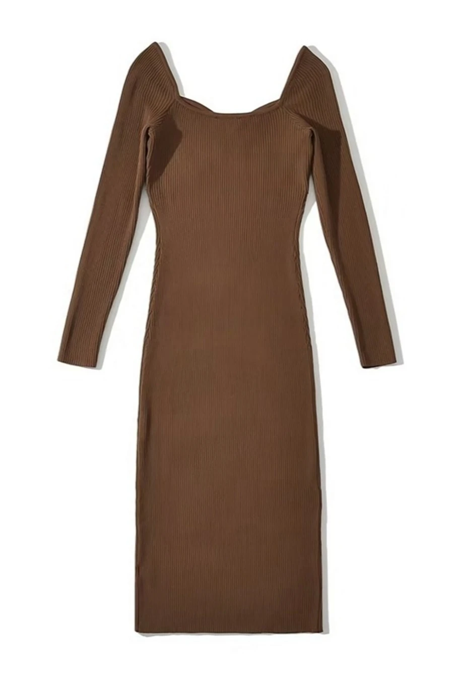 Slight stretch solid color 4-colors hollow ribbed knit slim sexy midi dress