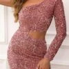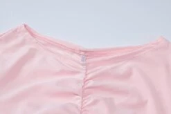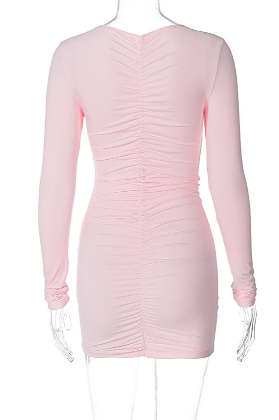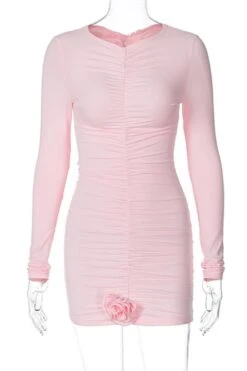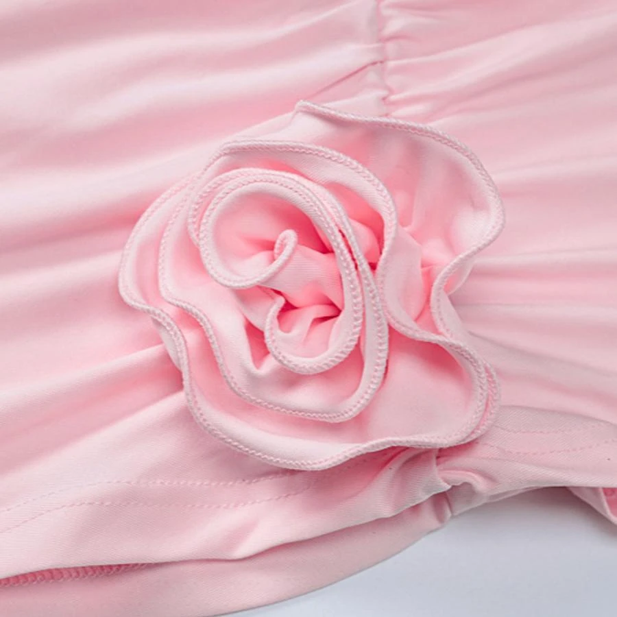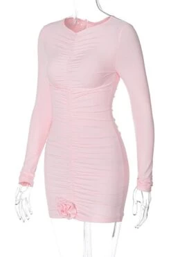 Solid color flower decor stretch pleated sexy bodycon mini dress
