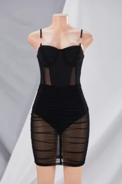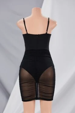 Solid color stitching mesh plus size chain 4 colors sling stretch sexy mini dress (with lining)