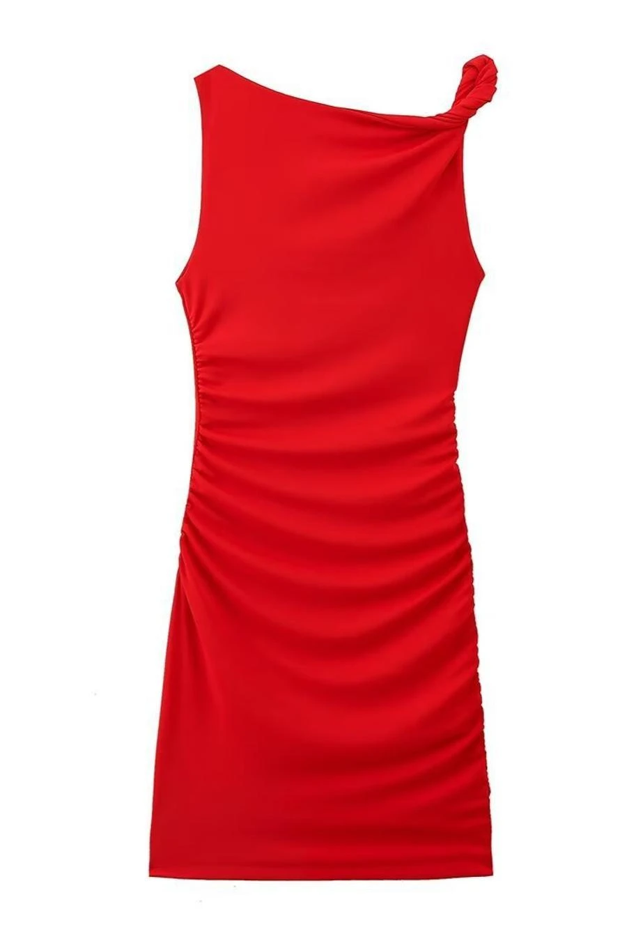 Solid color summer slight stretch sexy pleated bodycon mini dress size run small