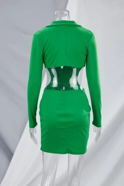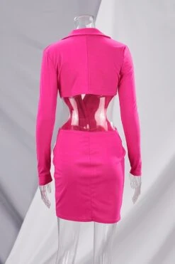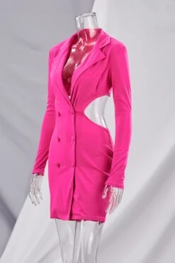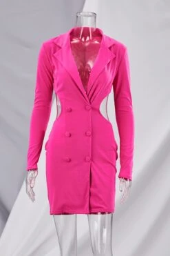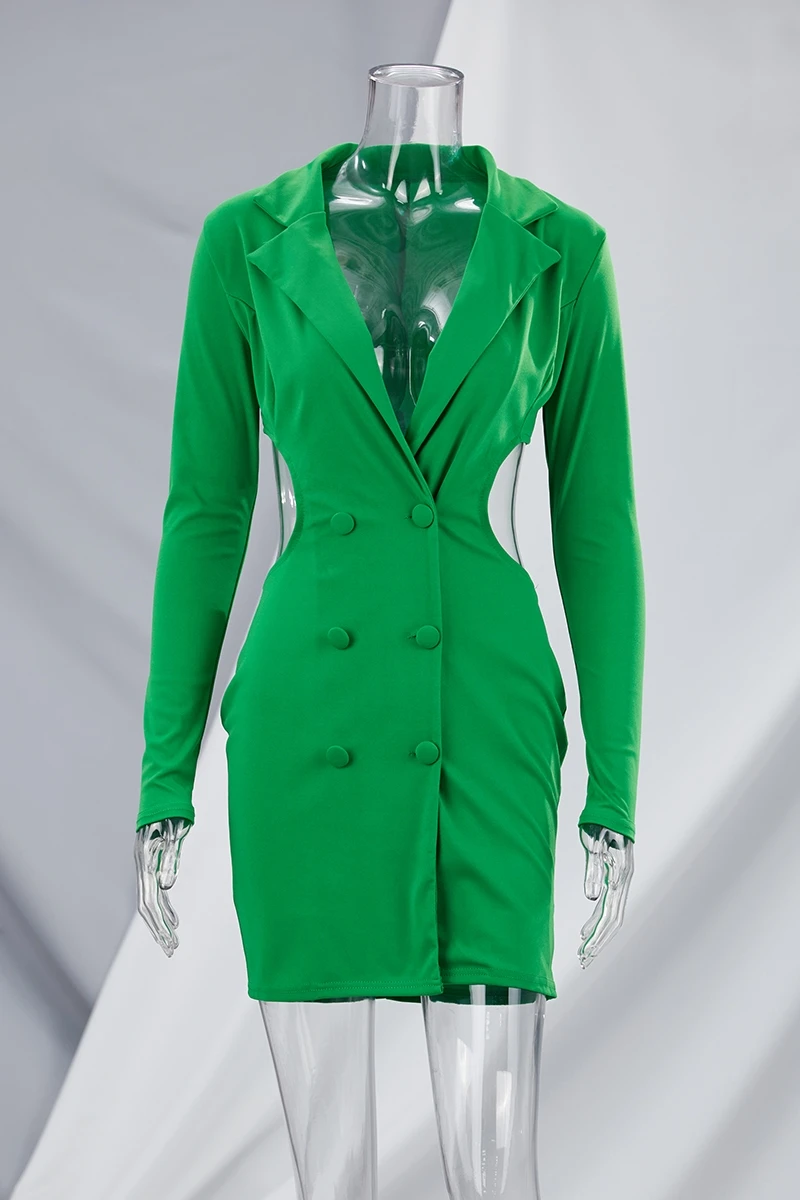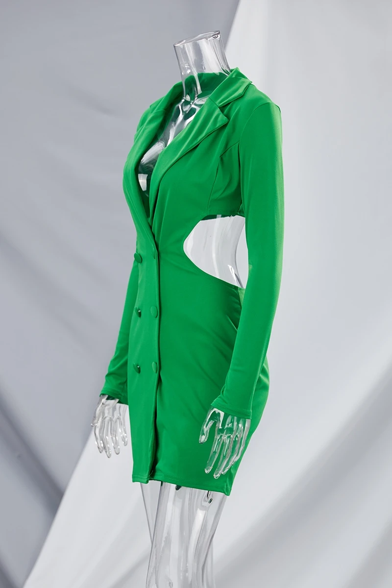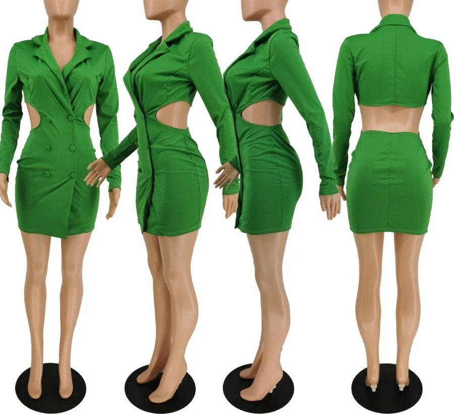 Spring new plus size solid color stretch suit collar single-breasted hollow sexy mini dress