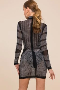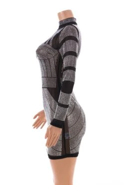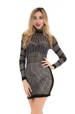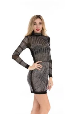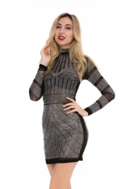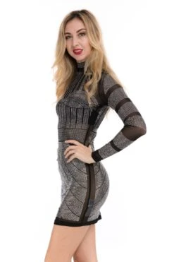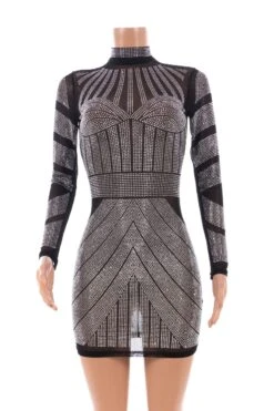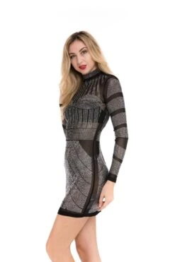 Spring new sexy slim fit mesh perspective hot drilling zipper dress(No lining)