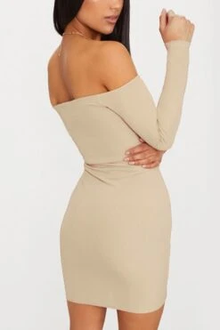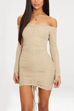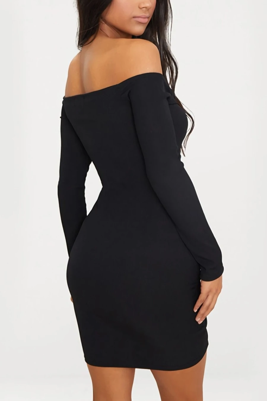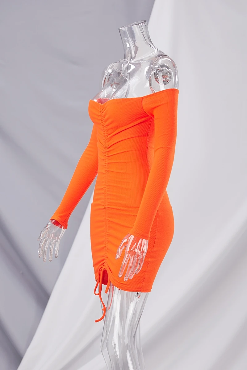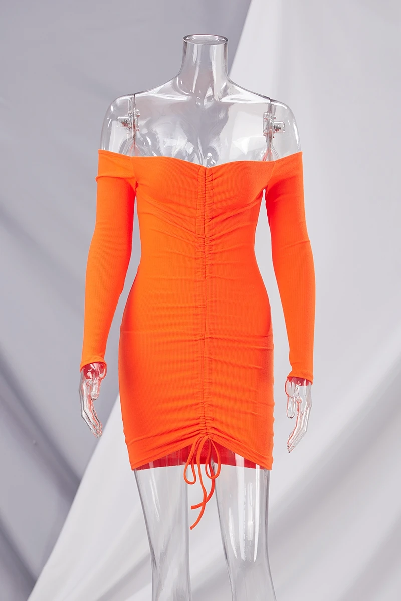 Spring new stylish simple 5 colors solid color stretch shirring off-shoulder slim sexy mini dress