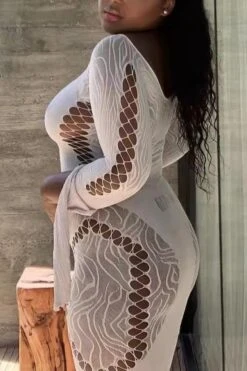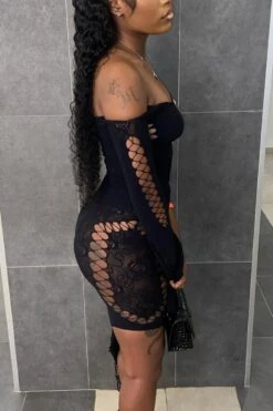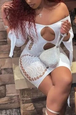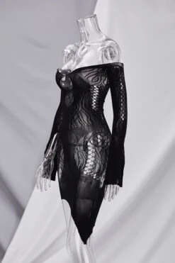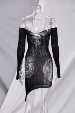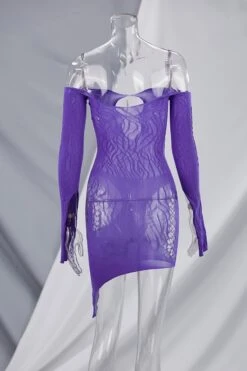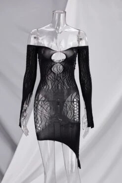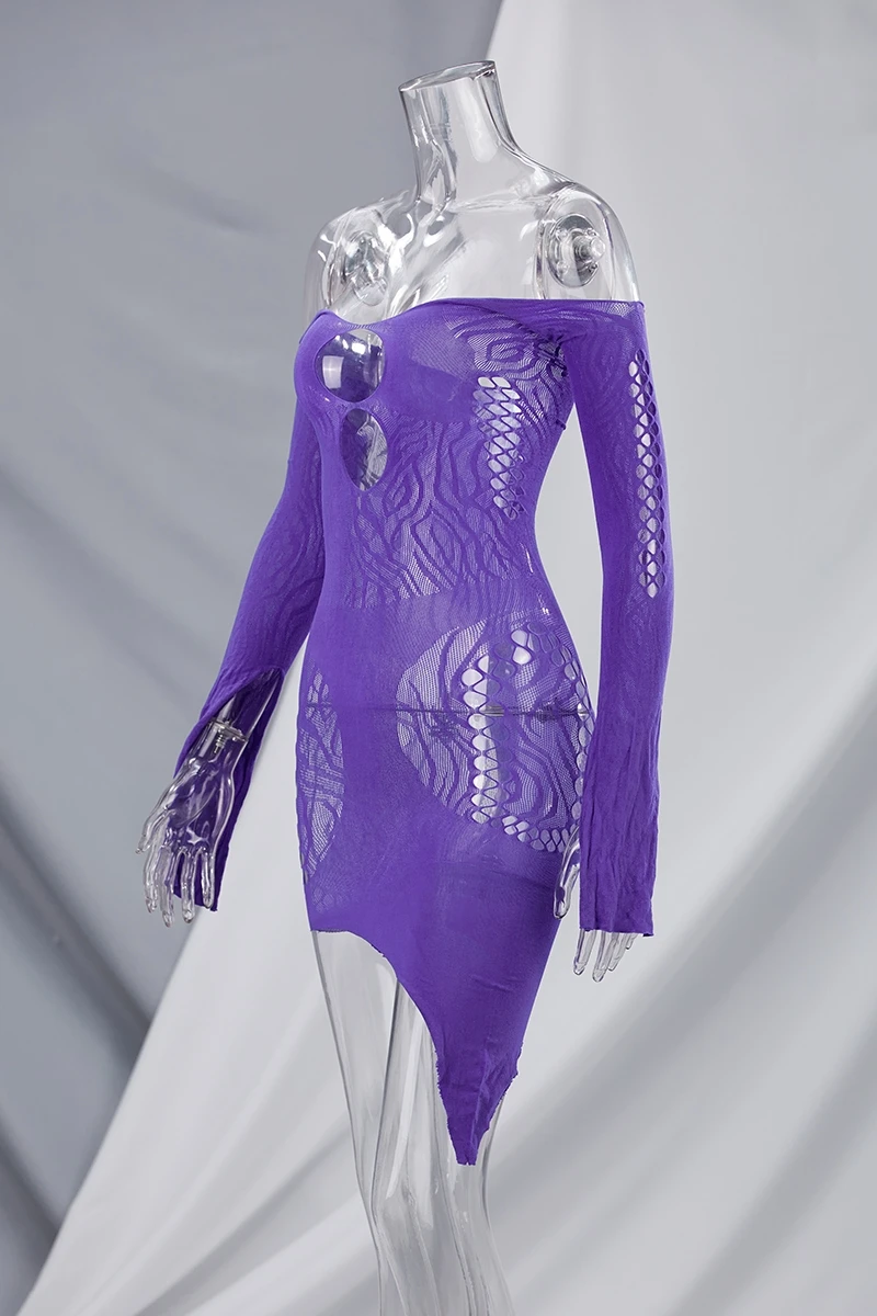 Spring new stylish simple solid color hollow off-shoulder elastic 5-colors mesh see-through sexy mini dress
