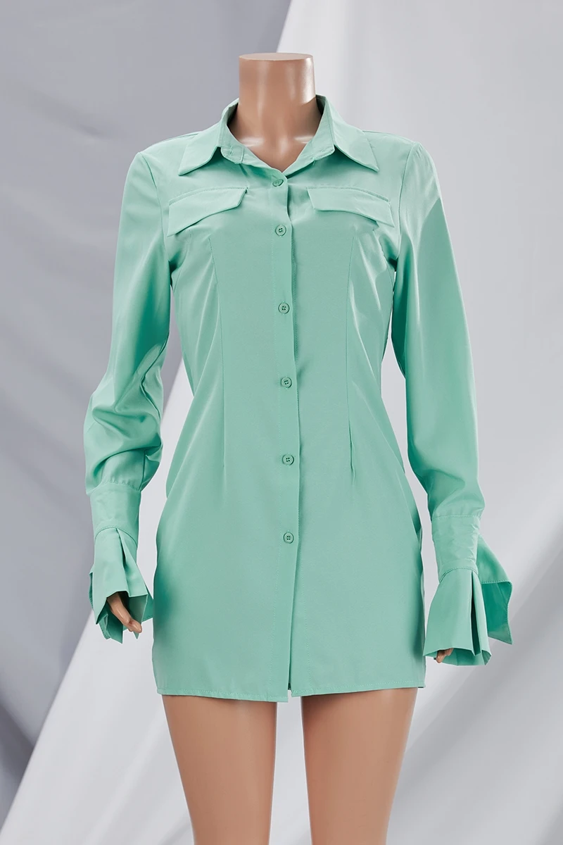 Spring new stylish simple solid color single-breasted micro-elastic plus size sexy mini dress