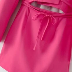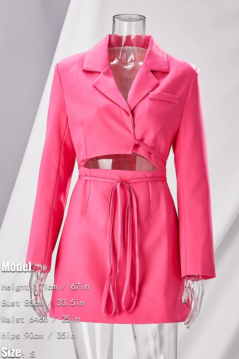 Spring new stylish solid color inelastic hollow long sleeves lace-up sexy mini dress