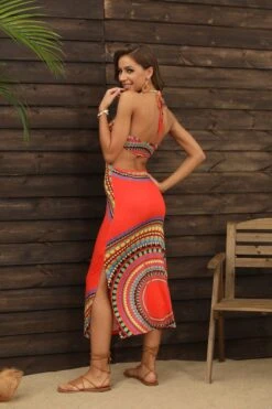 Spring summer new digital print stretch halter-neck hollow sexy dress