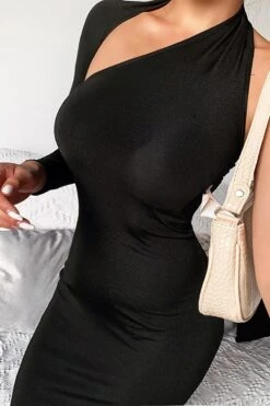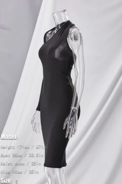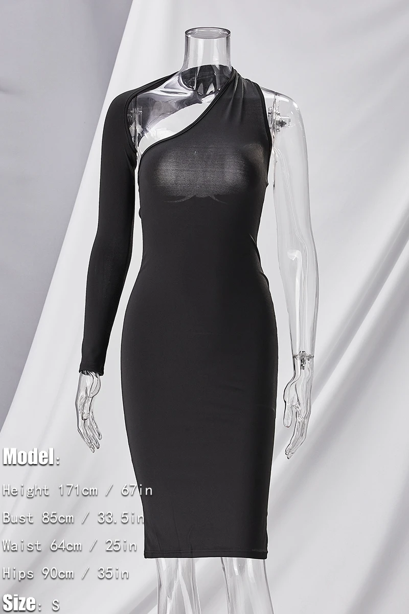 Spring & summer new solid color stretch one shoulder halter-neck hollow bodycon stylish midi dress