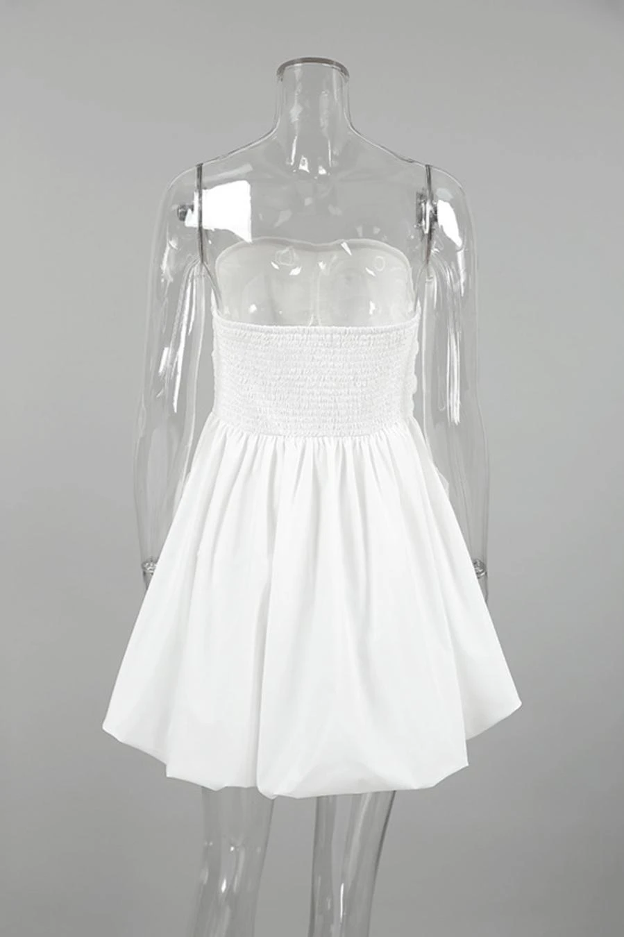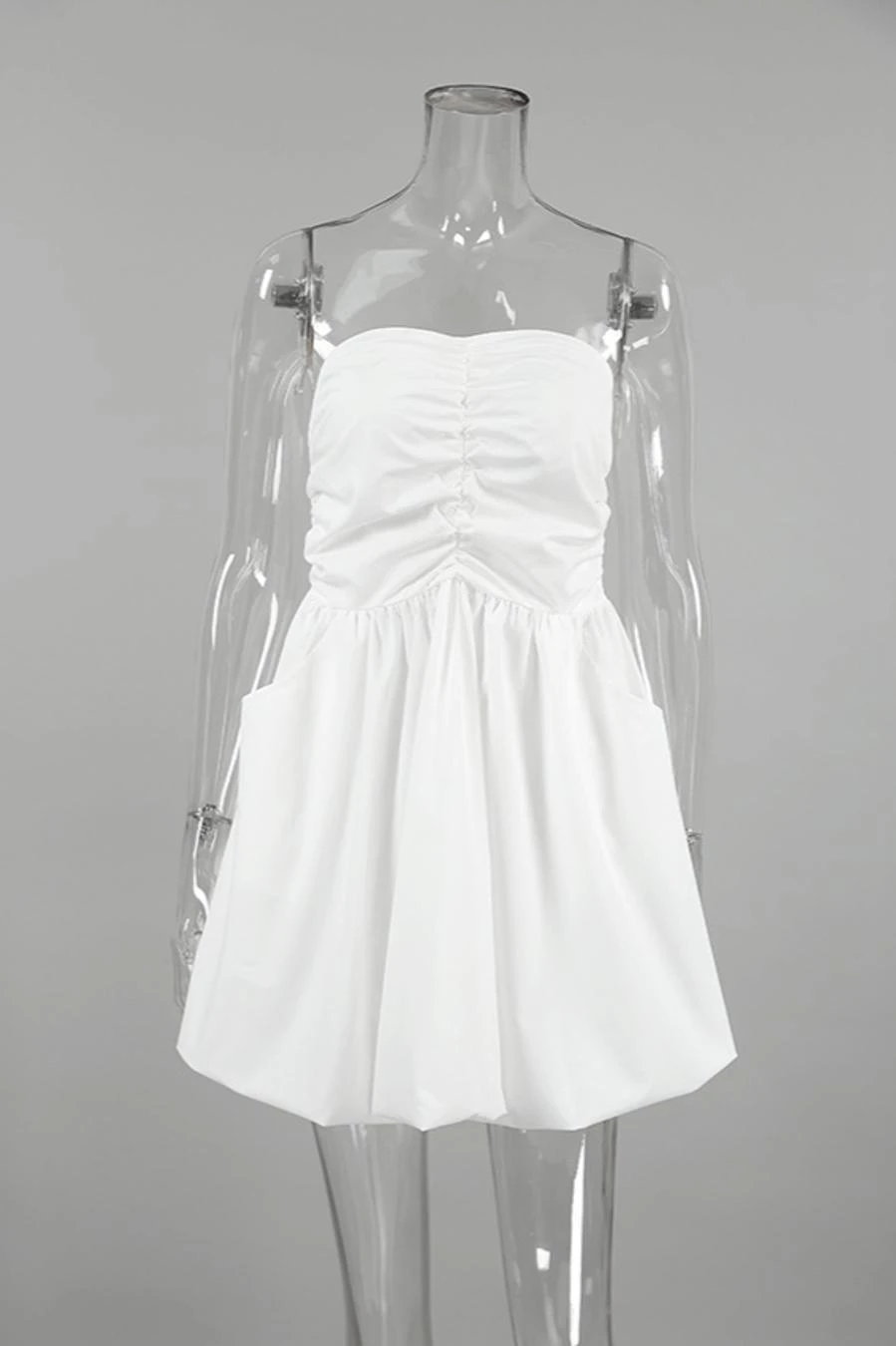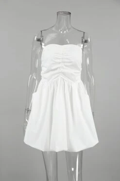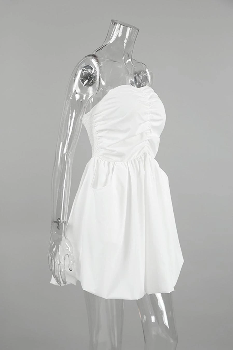 Stylish non-stretch solid color strapless shirring mini dress