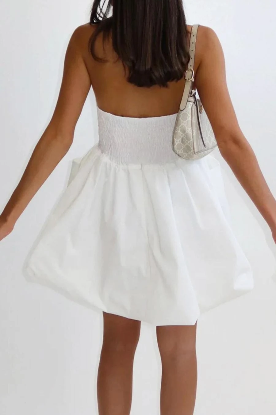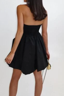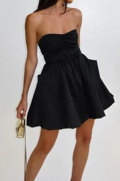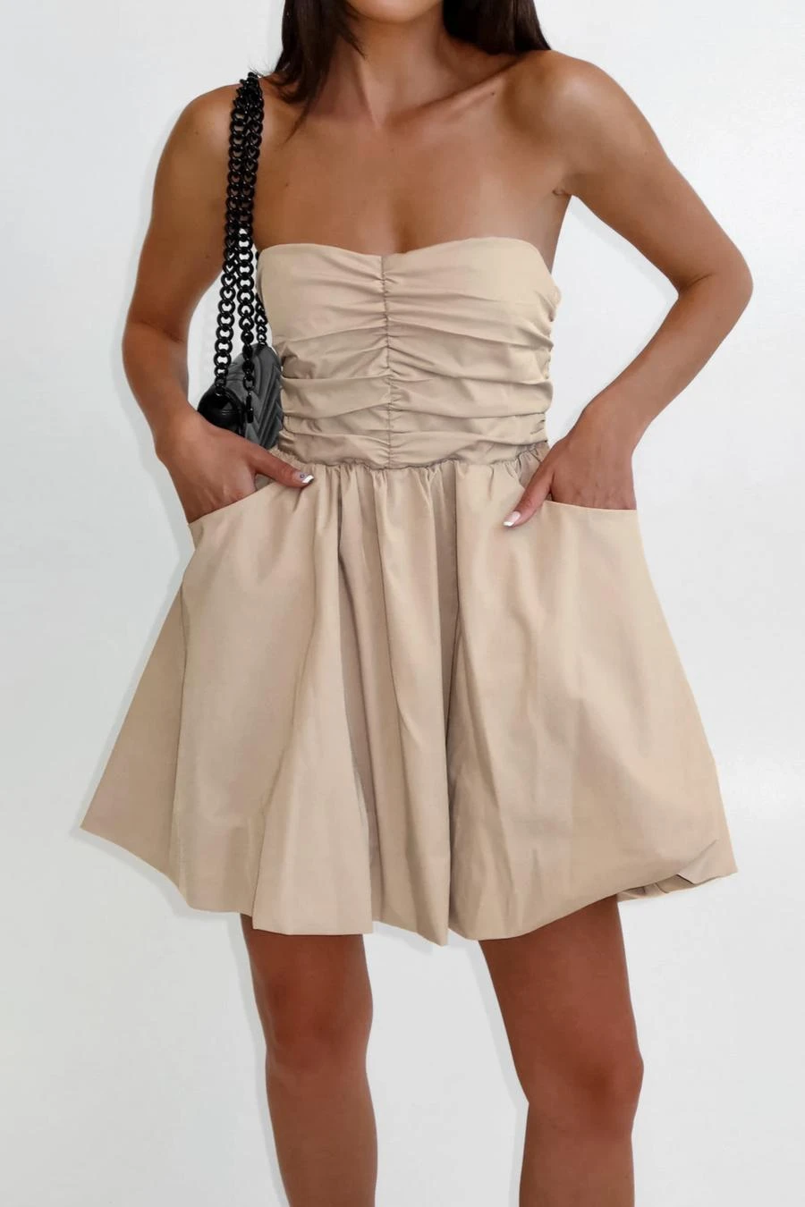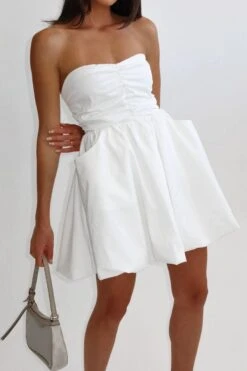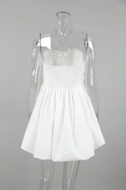 Stylish non-stretch solid color strapless shirring mini dress