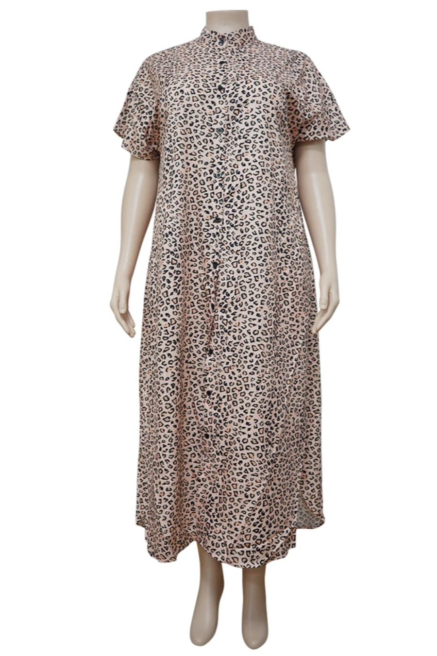 Summer leopard batch printing plus size L-4XL single breasted new stylish micro elastic loose casual maxi dress