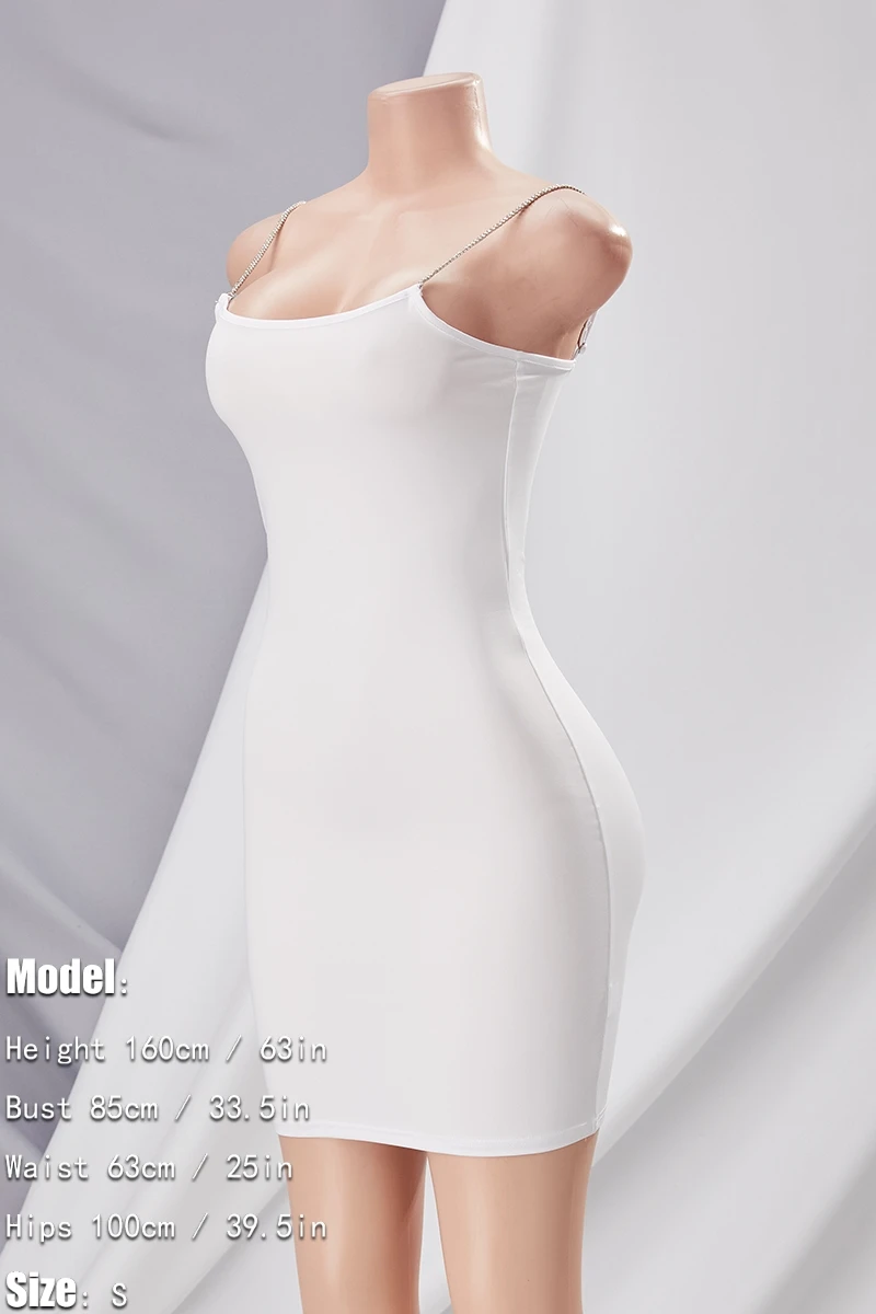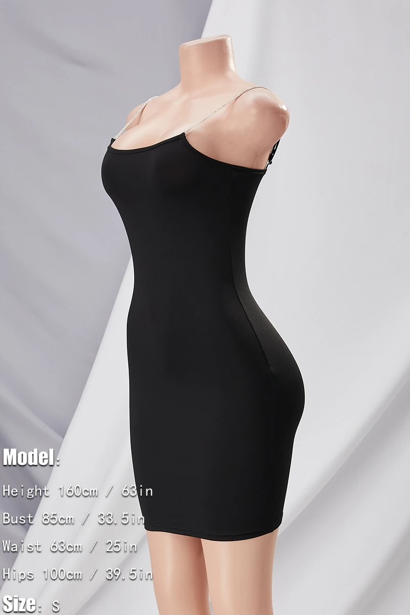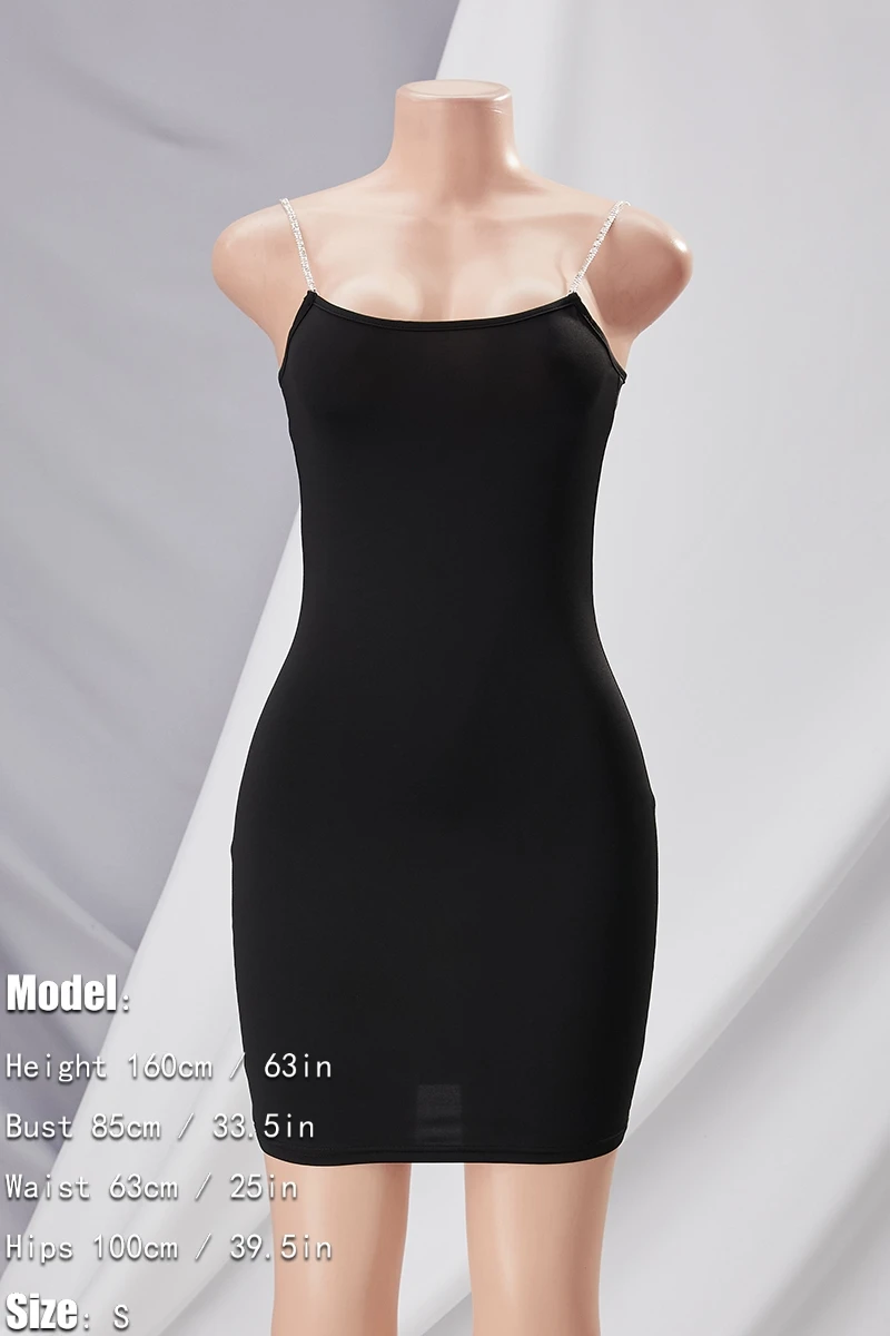 Summer new 2 colors rhinestone decor stretch double shoulder straps bodycon stylish mini dress