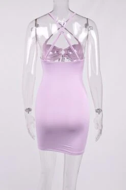 Summer new 2 colors solid color stretch double layer halter-neck hollow lace up bodycon stylish sexy mini dress