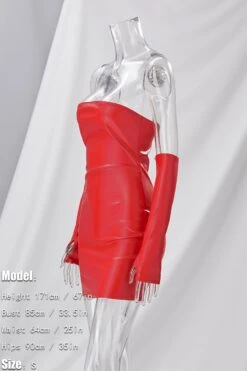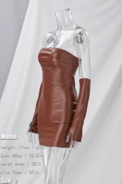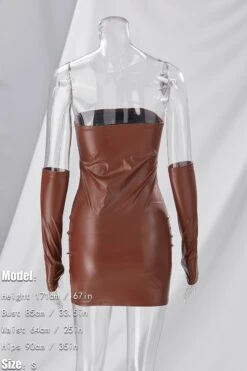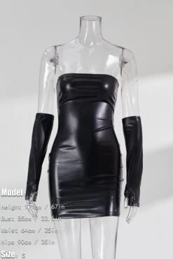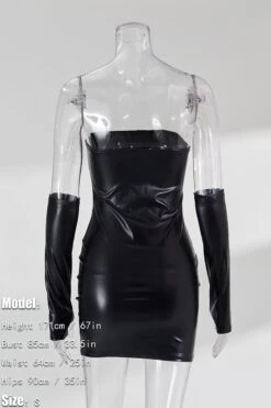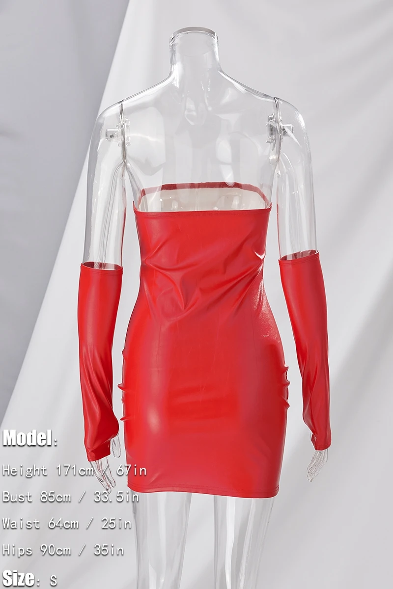 Summer new 3 colors pu leather micro-elastic tube design shirring bodycon stylish nightclub sexy mini dress(with a pair of sleeve)