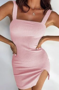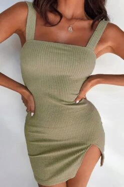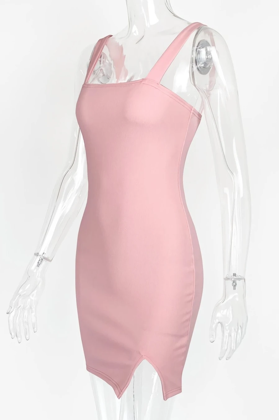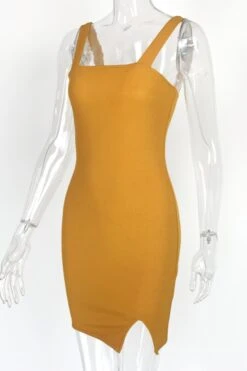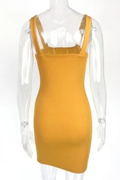 Summer new 4 colors ribbed knit stretch backless sling notched hem sexy bodycon mini dress