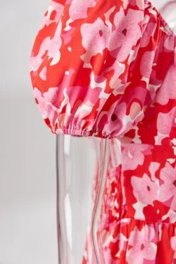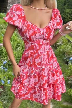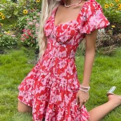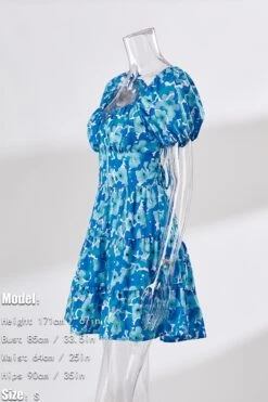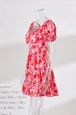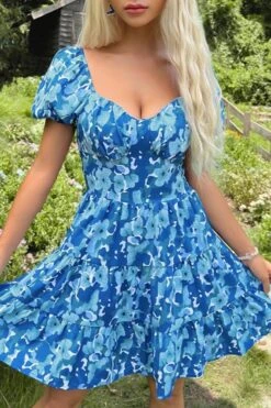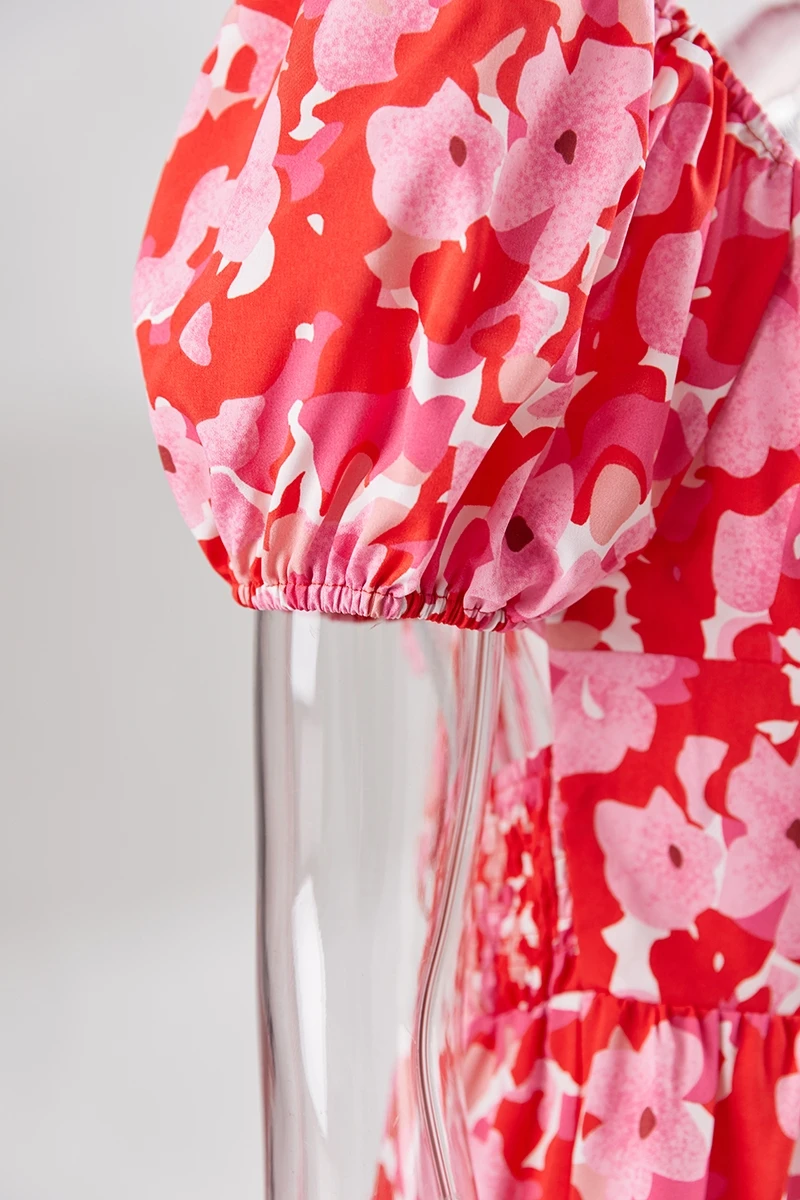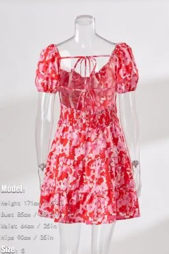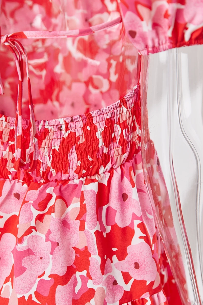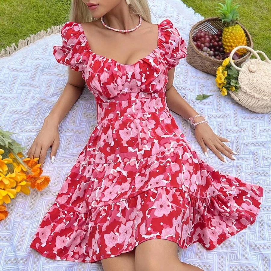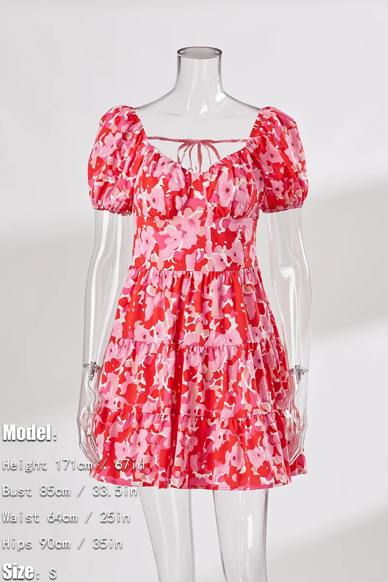 Summer new floral batch printing slight stretch ruffle smocked lace up backless stylish sexy mini dress