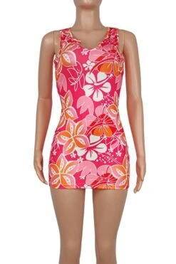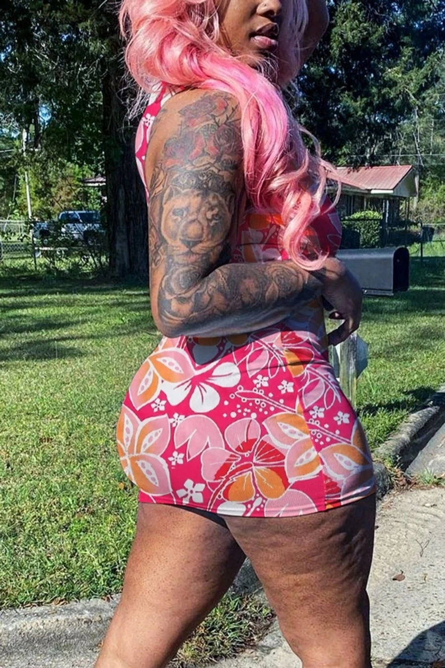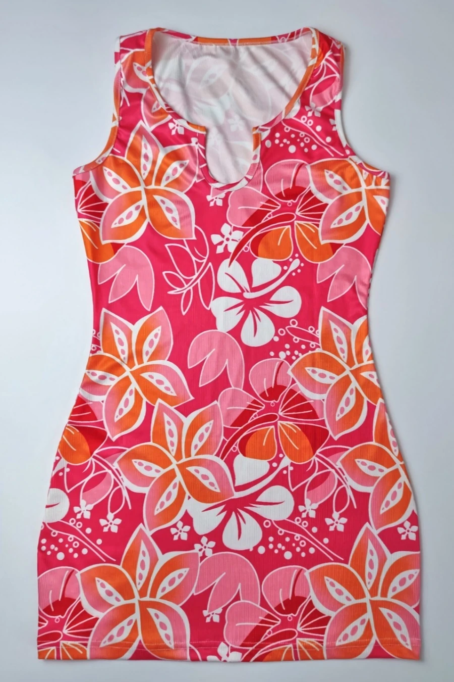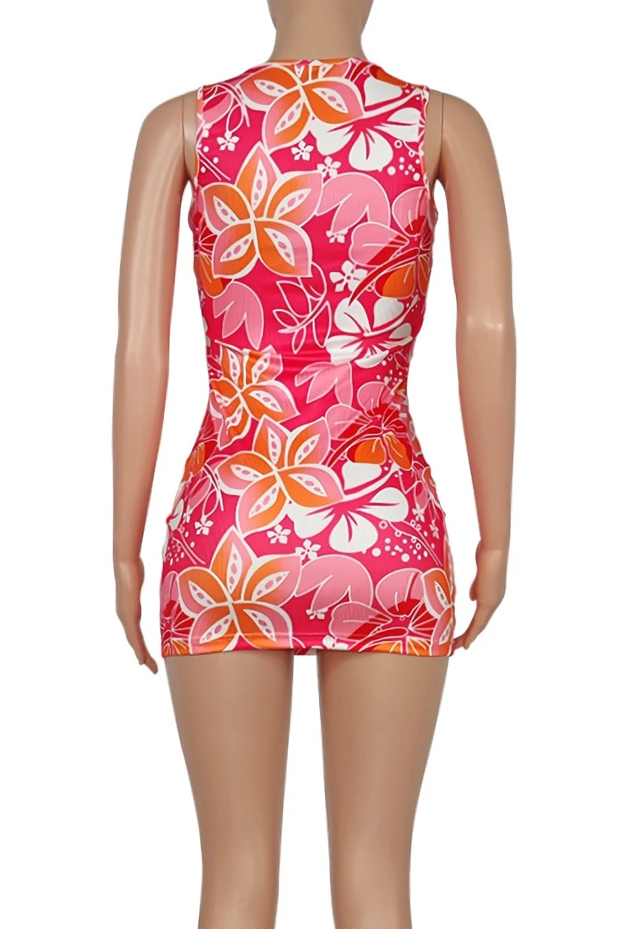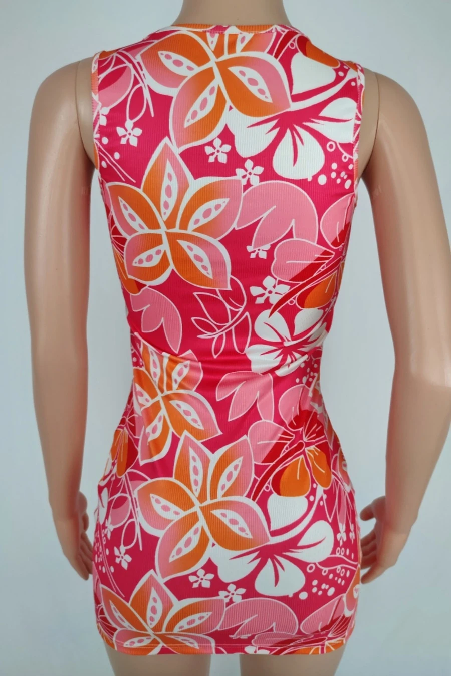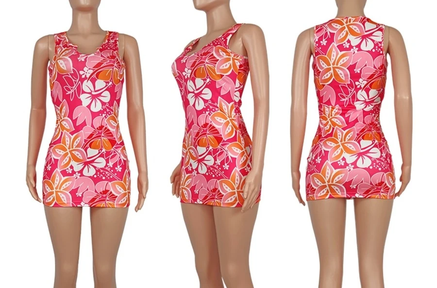 Summer new flower batch printing stretch sexy bodycon mini dress