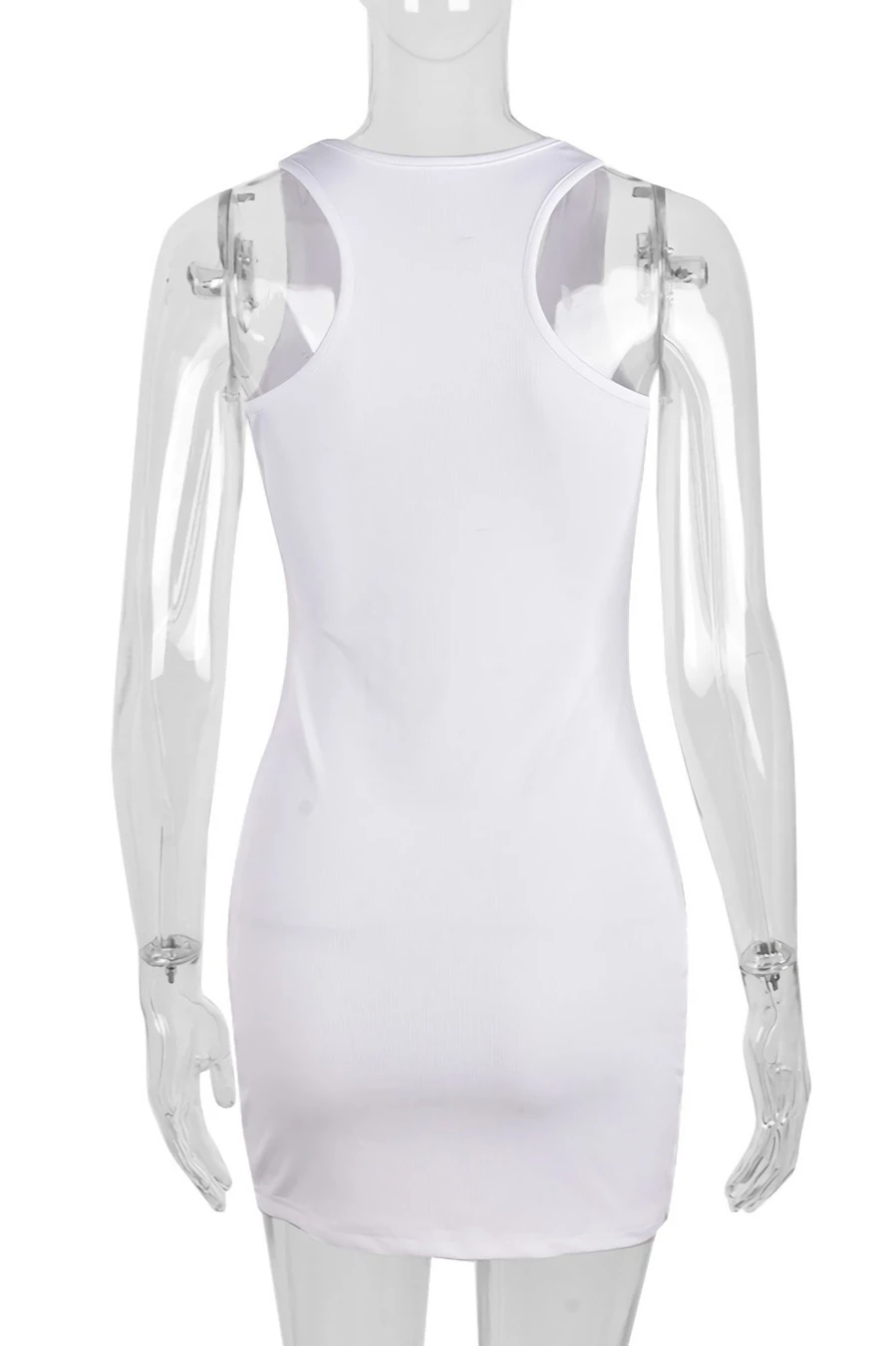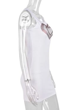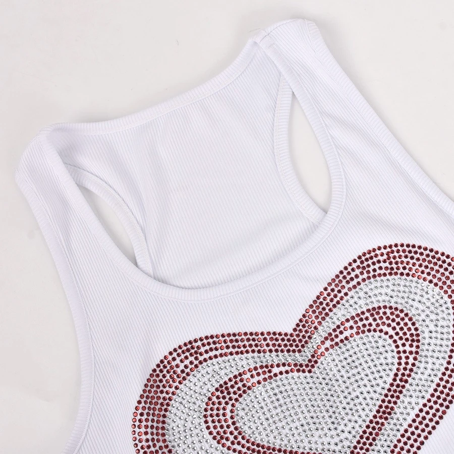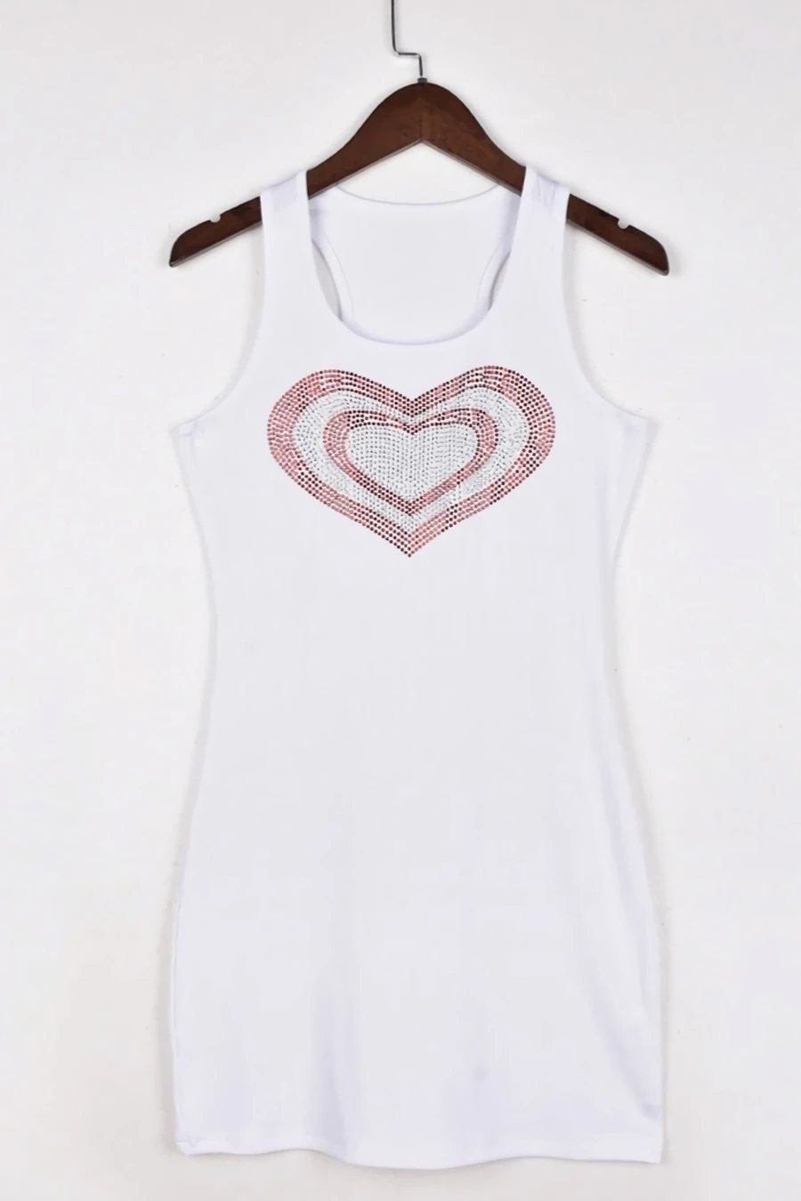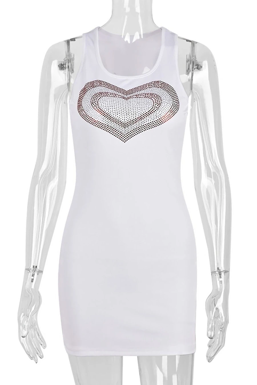 Summer new heart shaped rhinestone decor high stretch u-neck sleeveless sexy bodycon mini dress