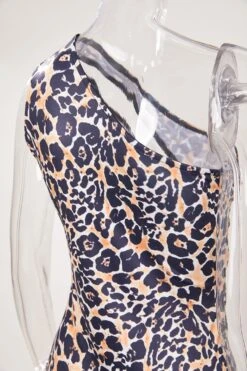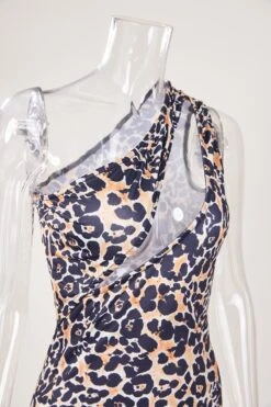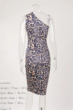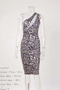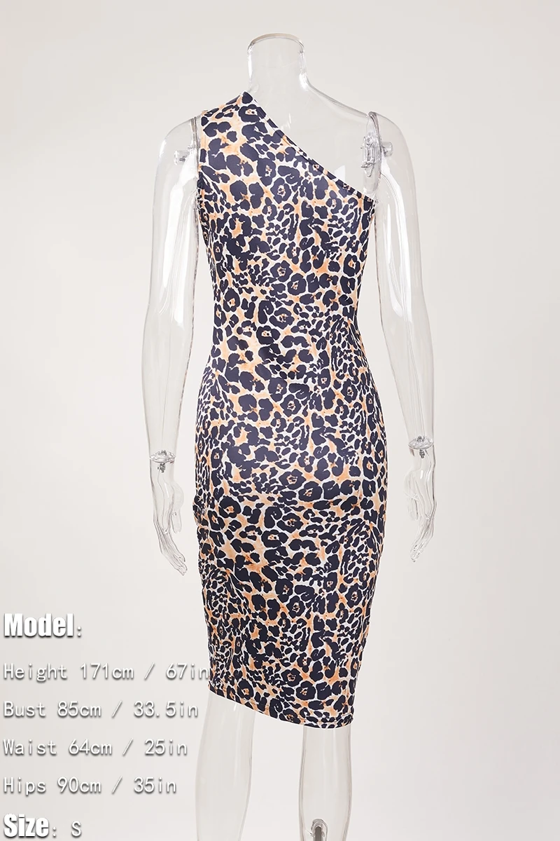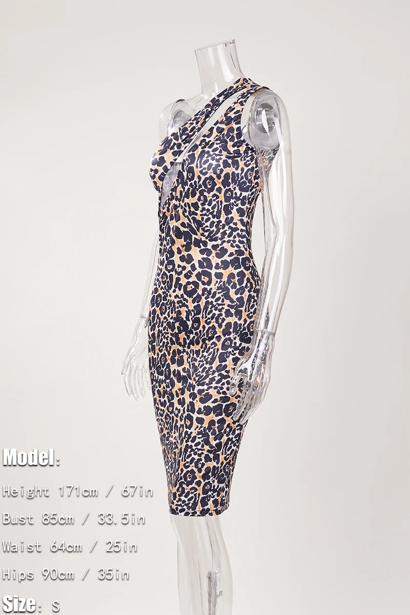 Summer new leopard printing stretch one-shoulder hollow sexy bodycon midi dress