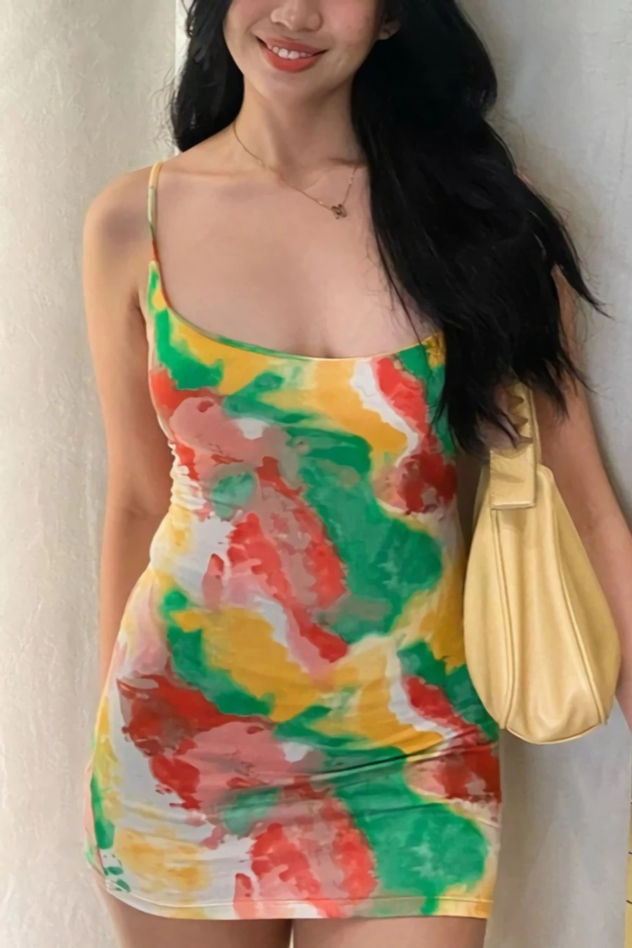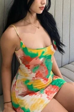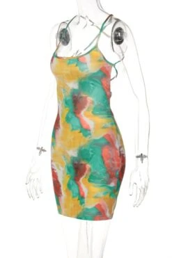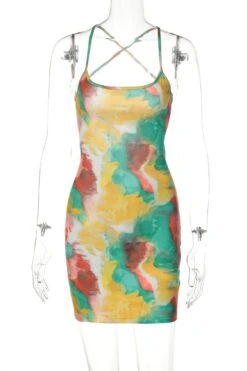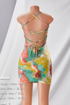 Summer new multicolor tie dye printing high stretch backless sling sexy bodycon mini dress