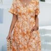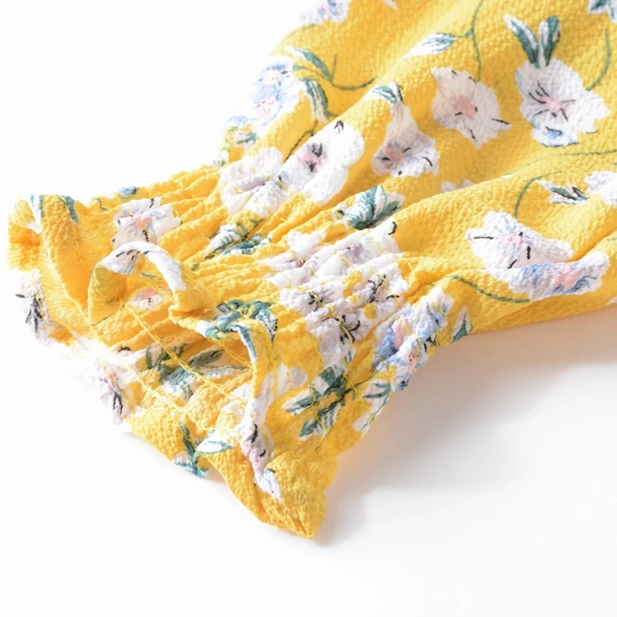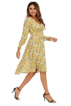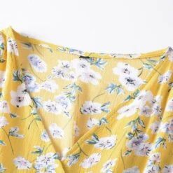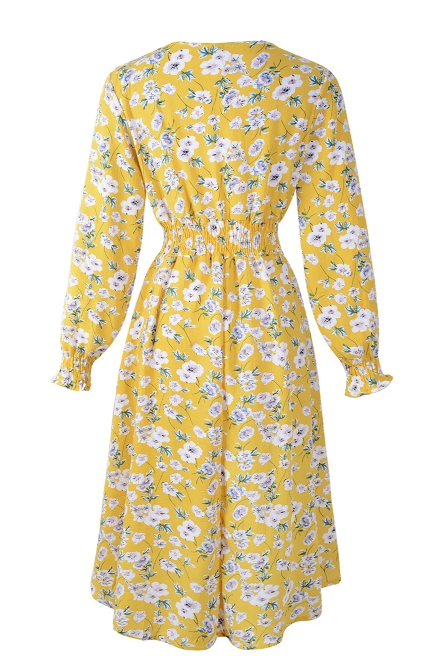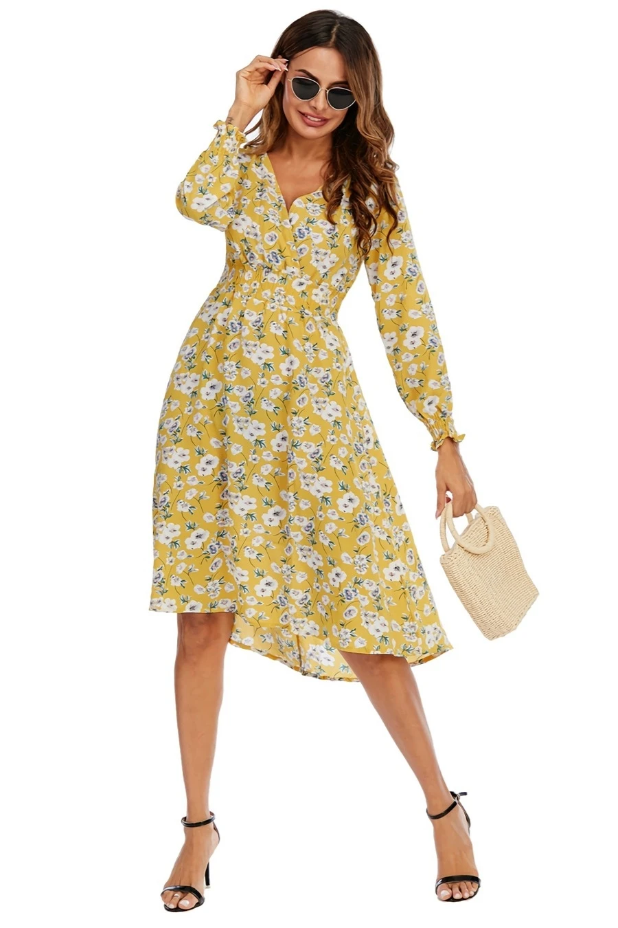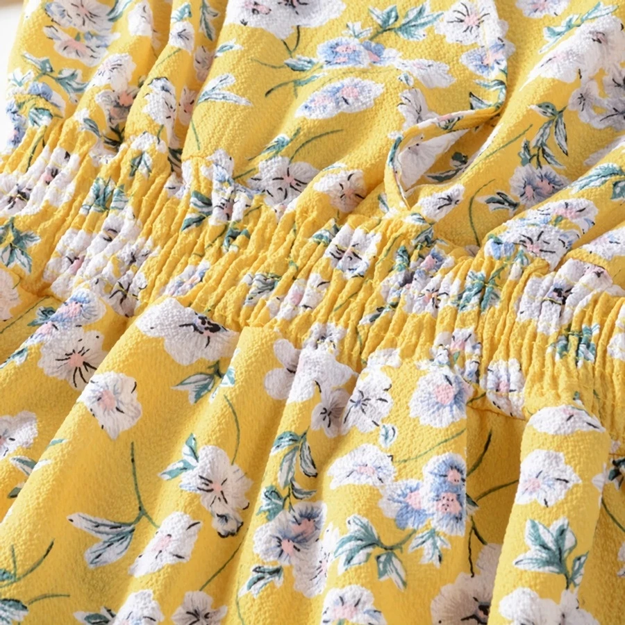Summer new plus size floral batch printing inelastic long sleeves v-neck stylish casual midi dress
