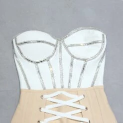 Summer new rhinestone decor contrast color patchwork high stretch tube design crossed sling zip-up bodycon stylish high quality sexy mini dress