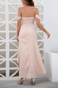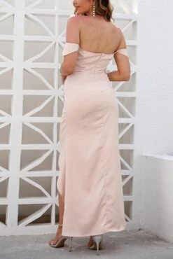 Summer new solid color inelastic off the shoulder zip-up irregular elegant high quality maxi dress