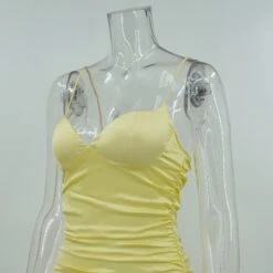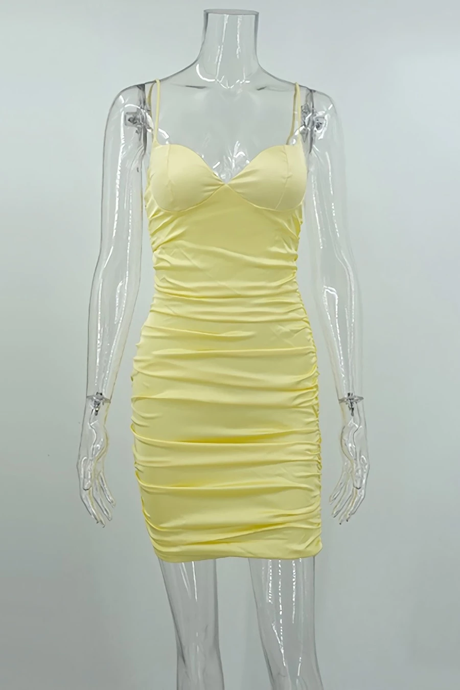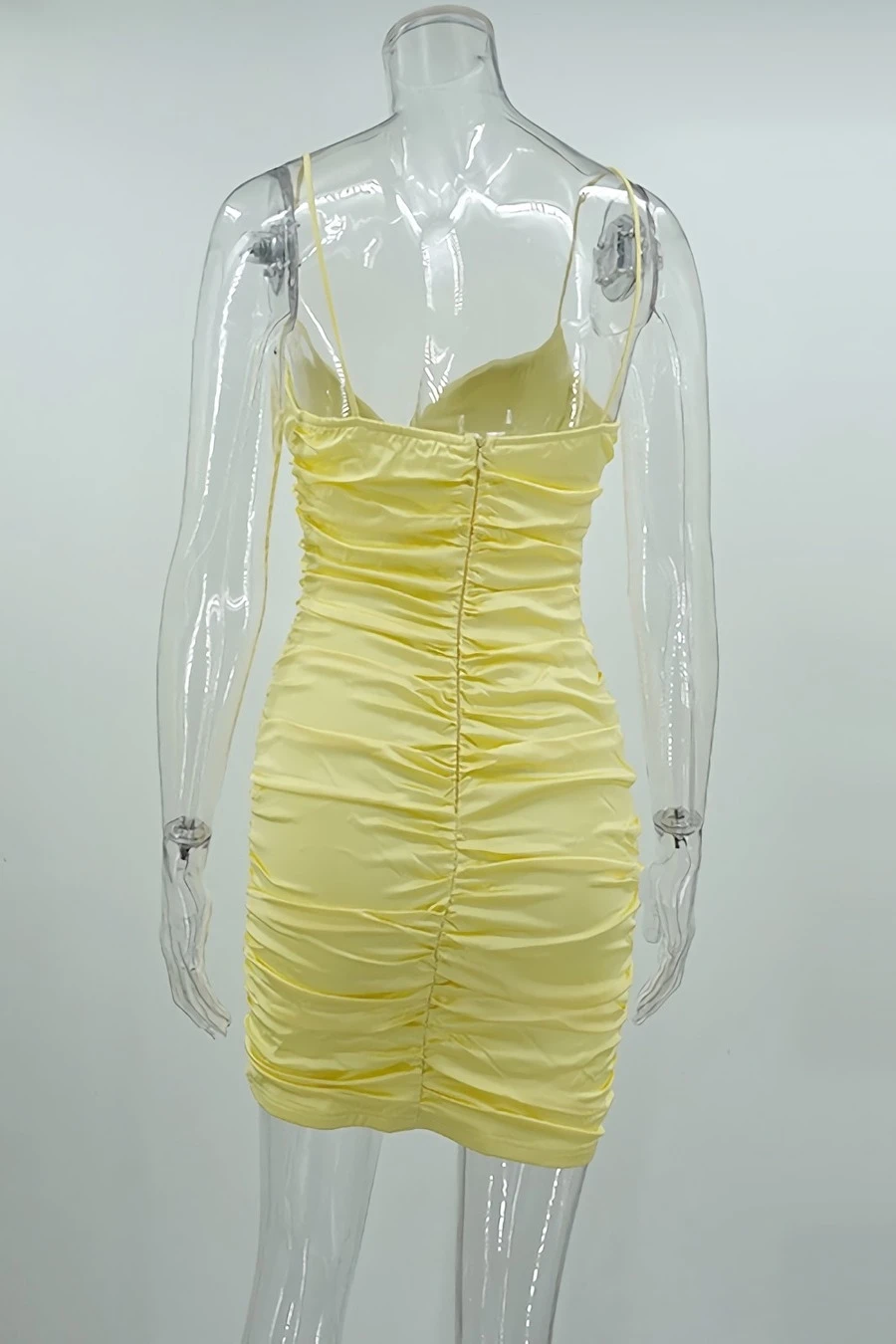 Summer new solid color slight stretch satin shirring sling backless zip-up bodycon high quality sexy mini dress