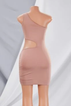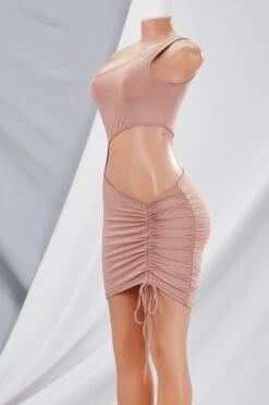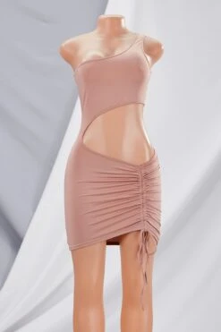 Summer new solid color stretch one-shoulder hollow drawstring ruched sexy mini dress