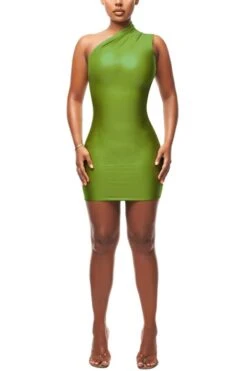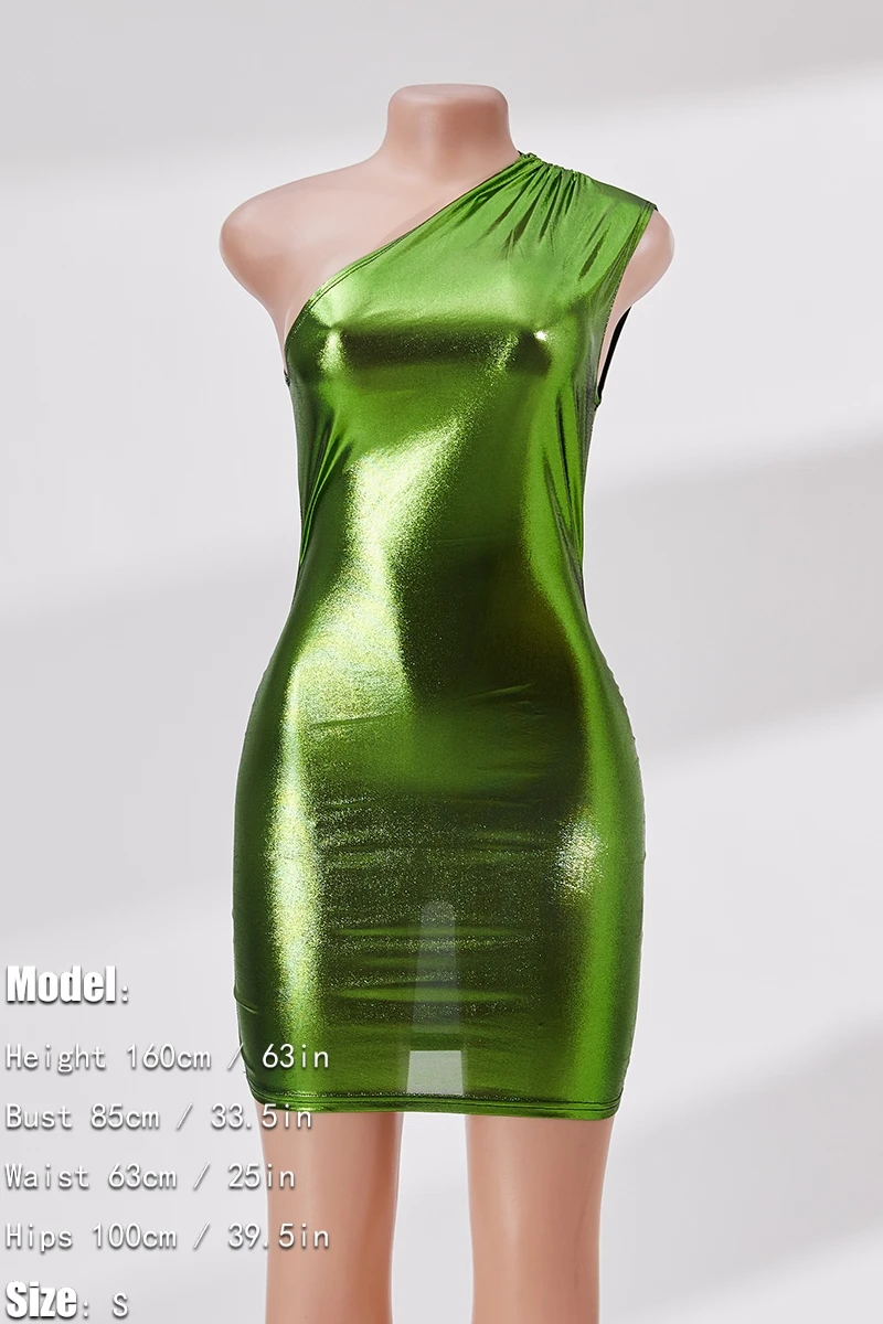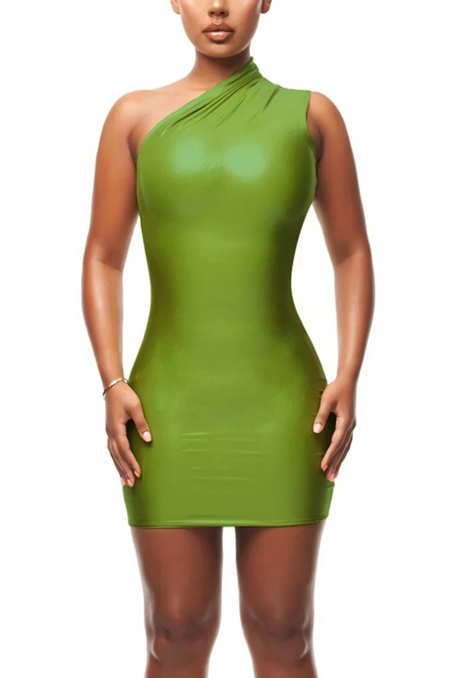 Summer new solid color stretch one shoulder sleeveless bodycon sexy mini dress