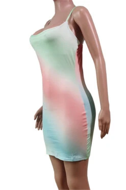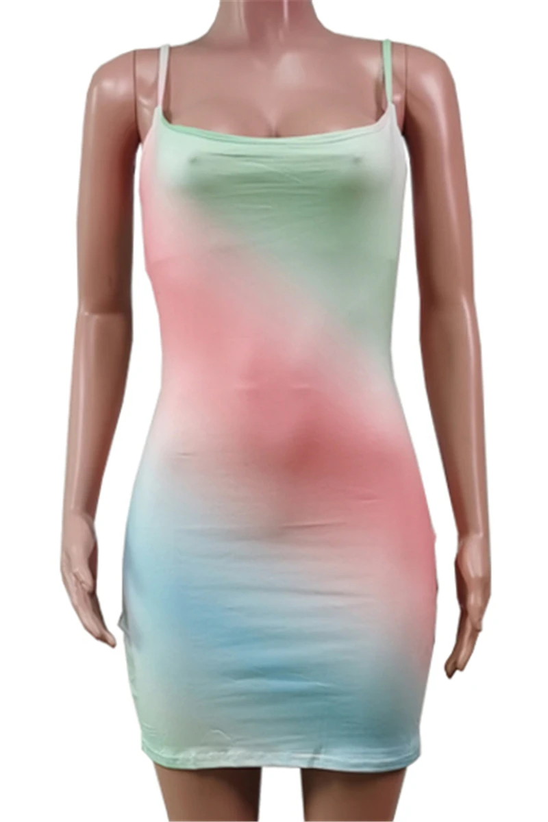 Summer new style contrast color printing sling stretch fashion slim mini dress #1#