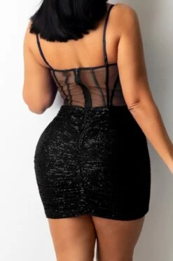 Summer new style sequins mesh see-through tight pleating sling zip-up sexy plus-size mini dress