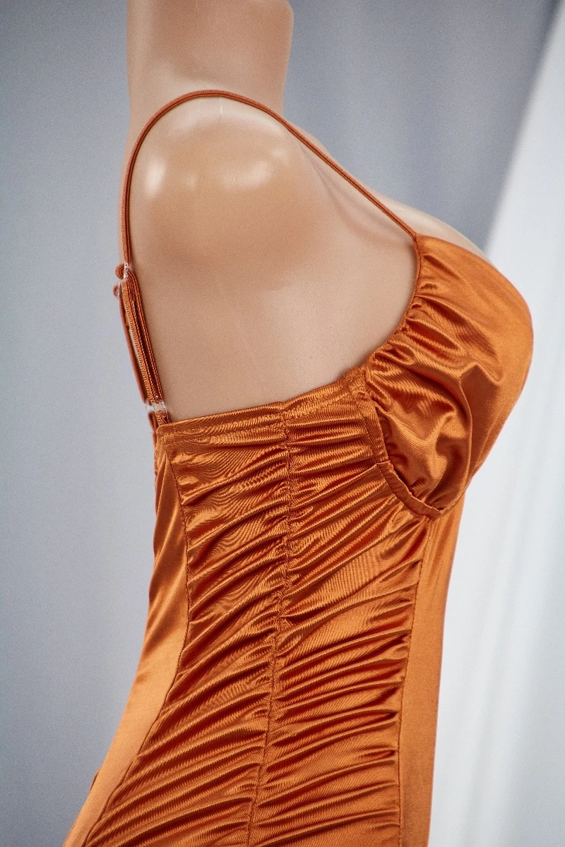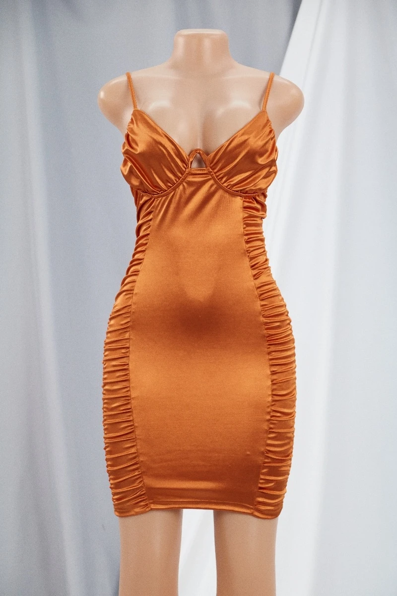 Summer new style solid color sling cutout pleated tight stretch mini dress