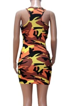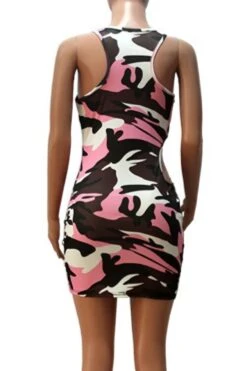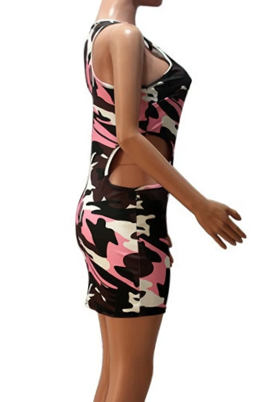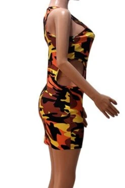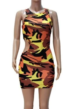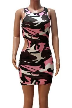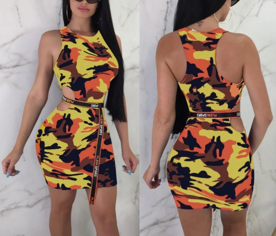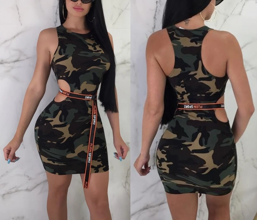 Summer new stylish 3 colors camo printing hollow plus size slight stretch slim sexy mini dress(without belt)