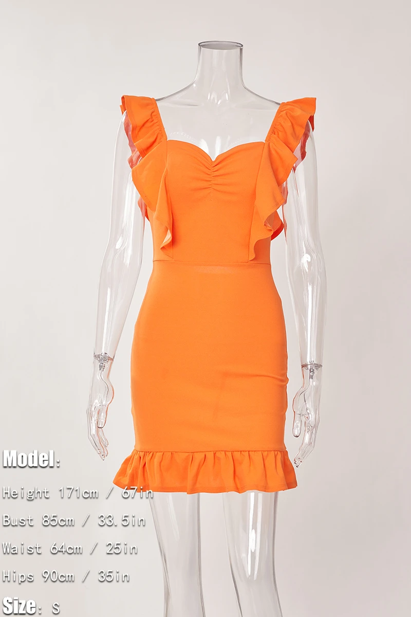 Summer new stylish 3 colors solid color micro elastic ruffle hollow sling backless slim sexy mini dress