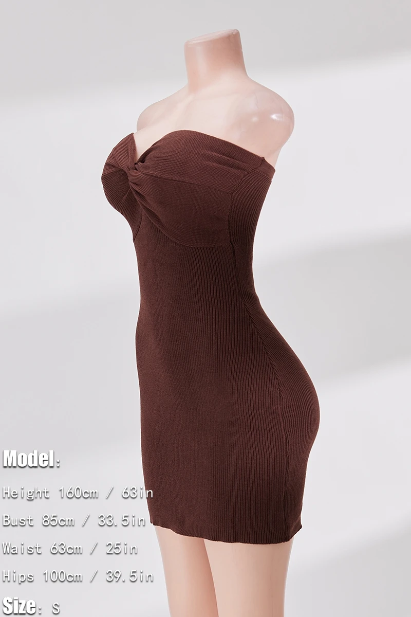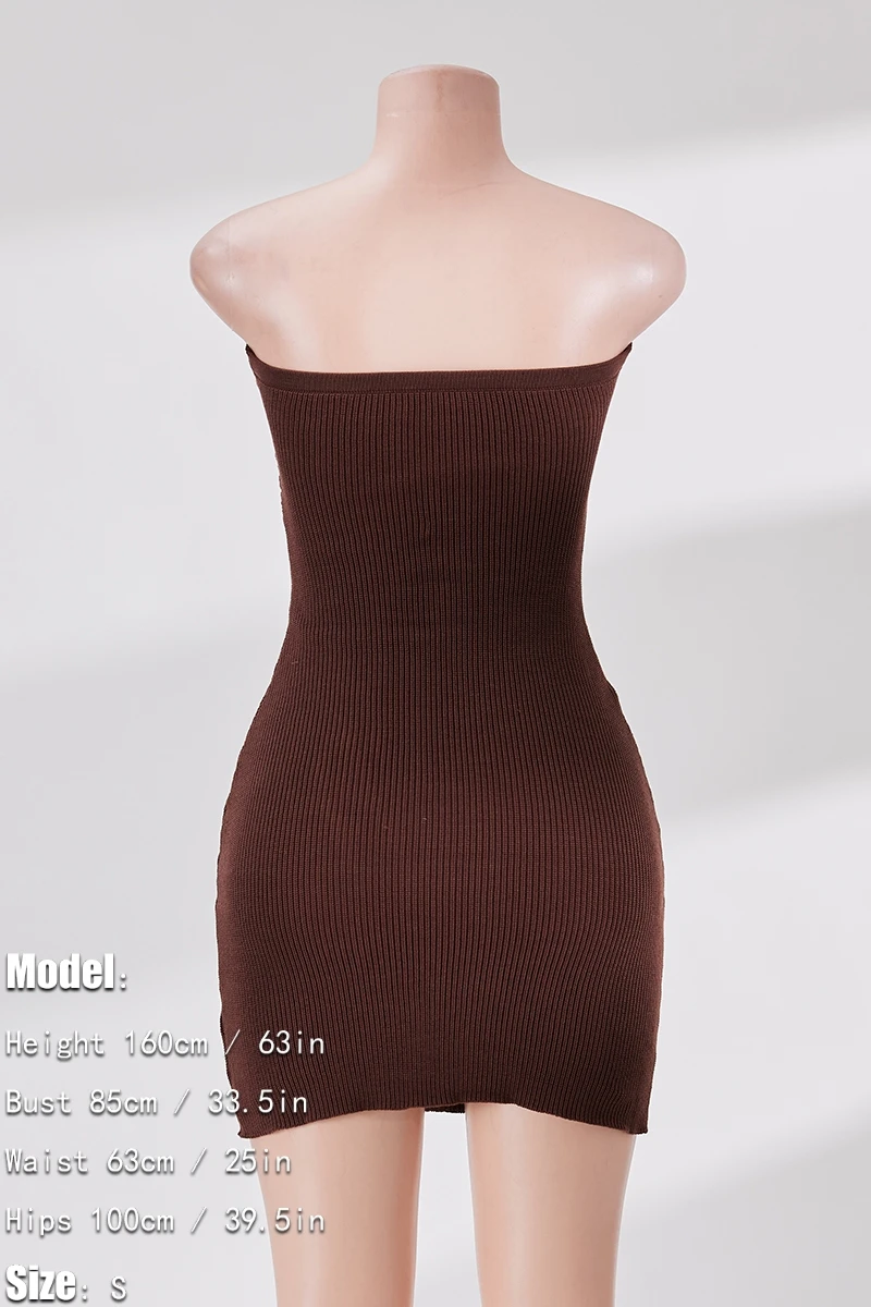 Summer new stylish 5 colors solid color strapless kinked high stretch slim knitted sexy mini dress
