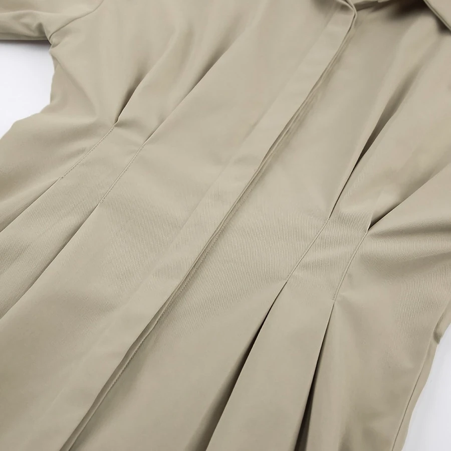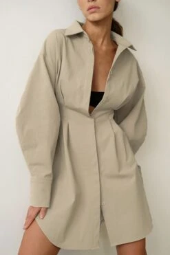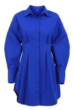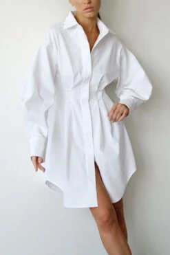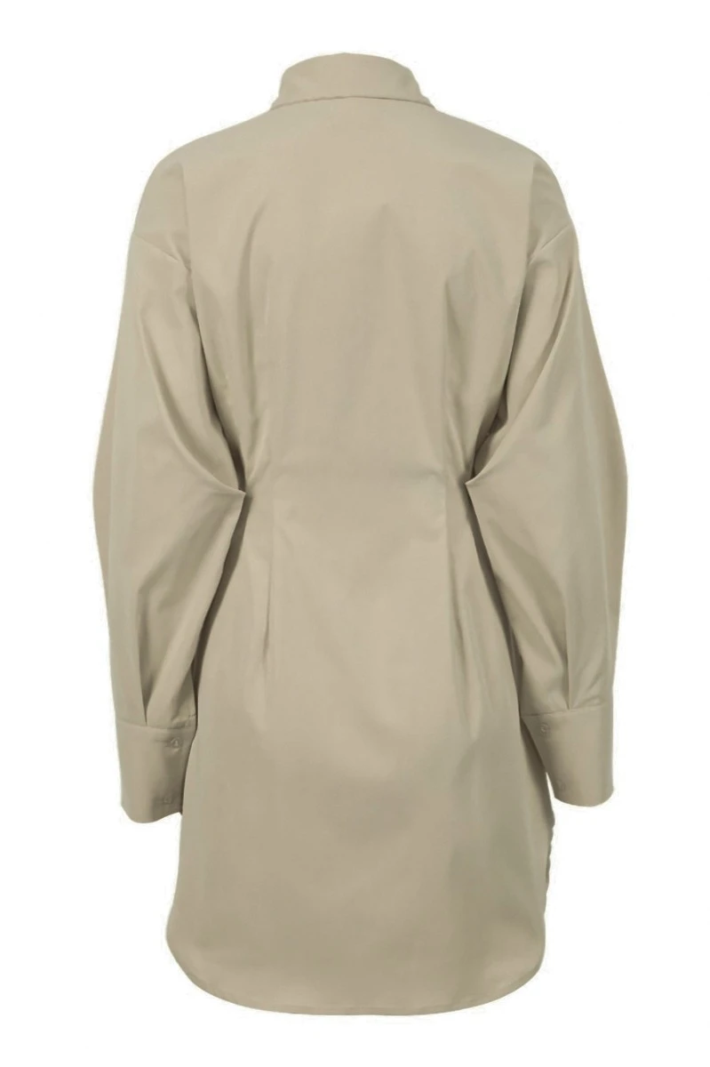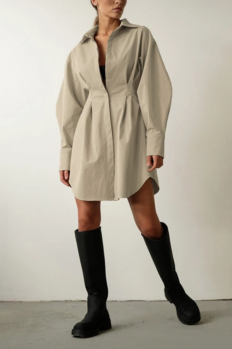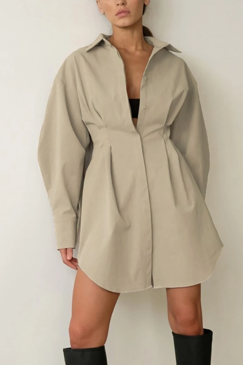 Summer new stylish five colors lapel button long sleeve shirring casual mini dress