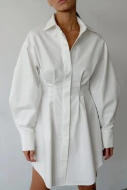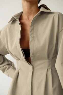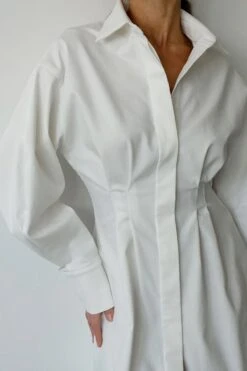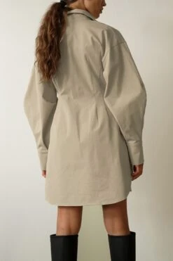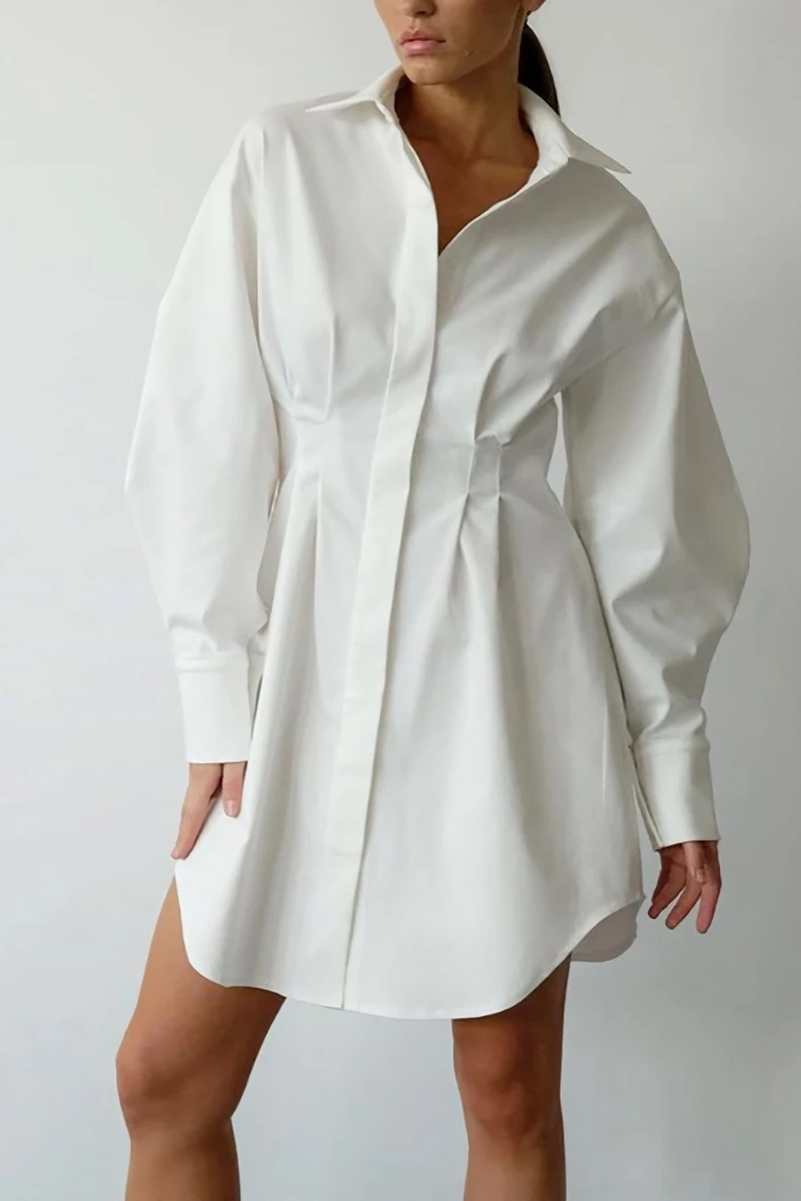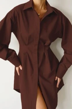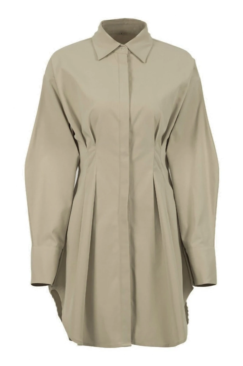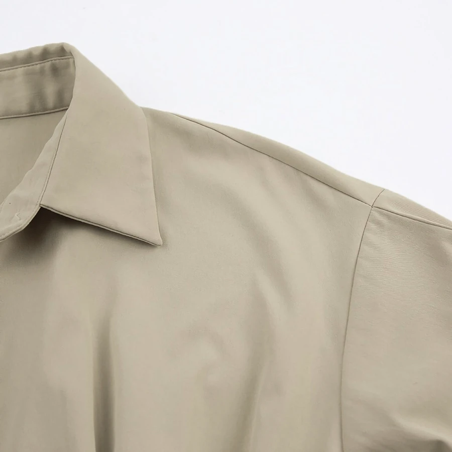 Summer new stylish five colors lapel button long sleeve shirring casual mini dress