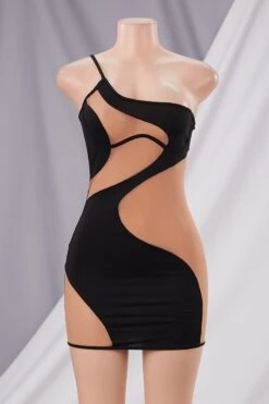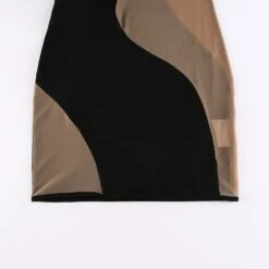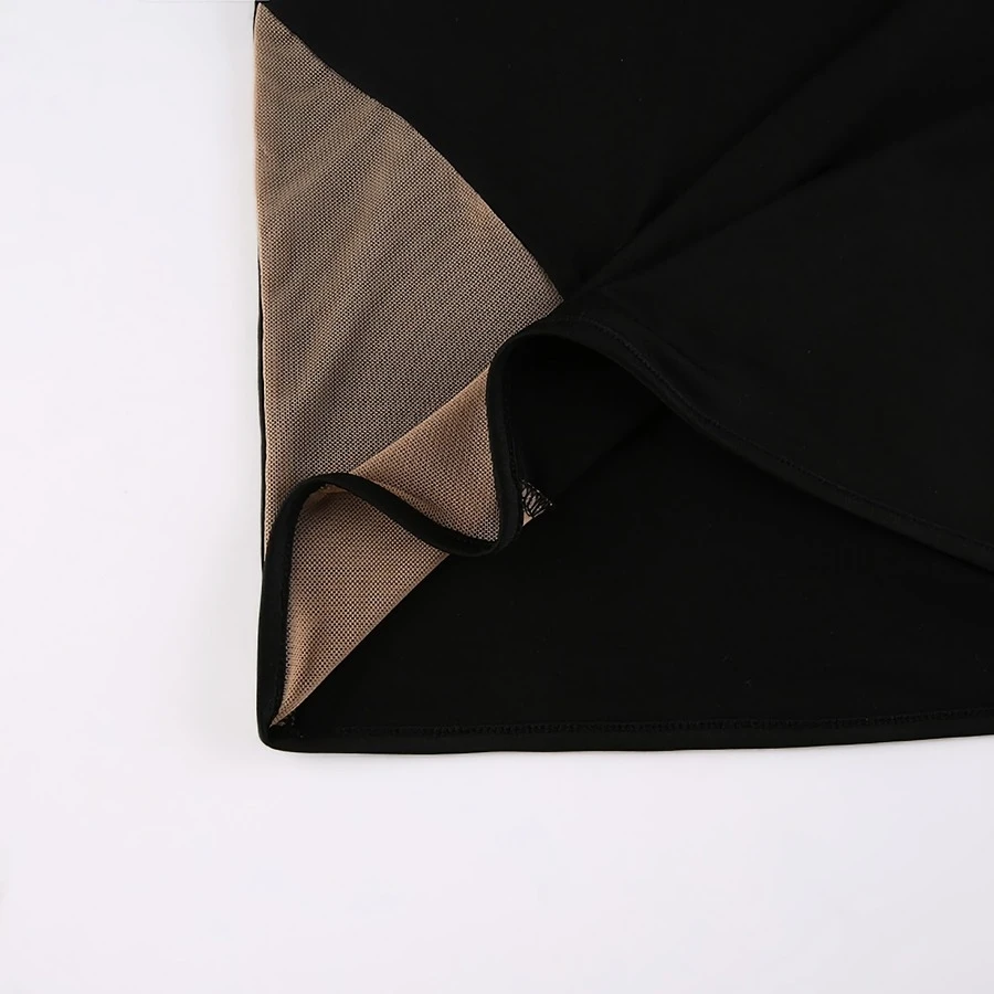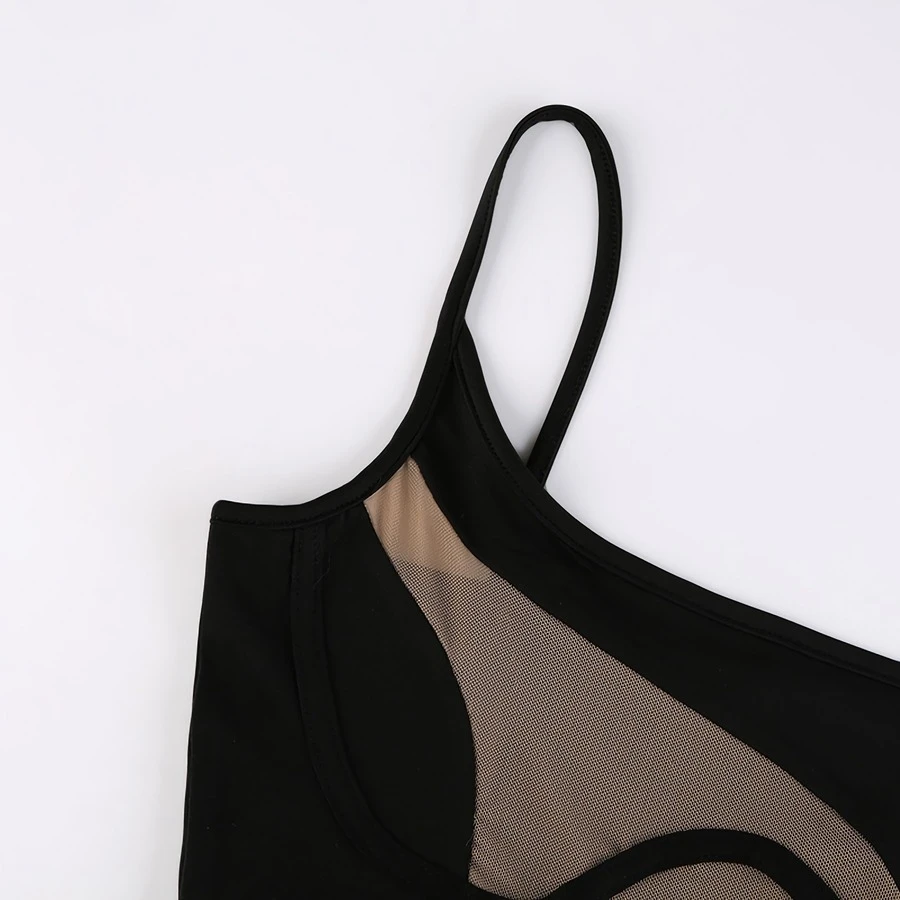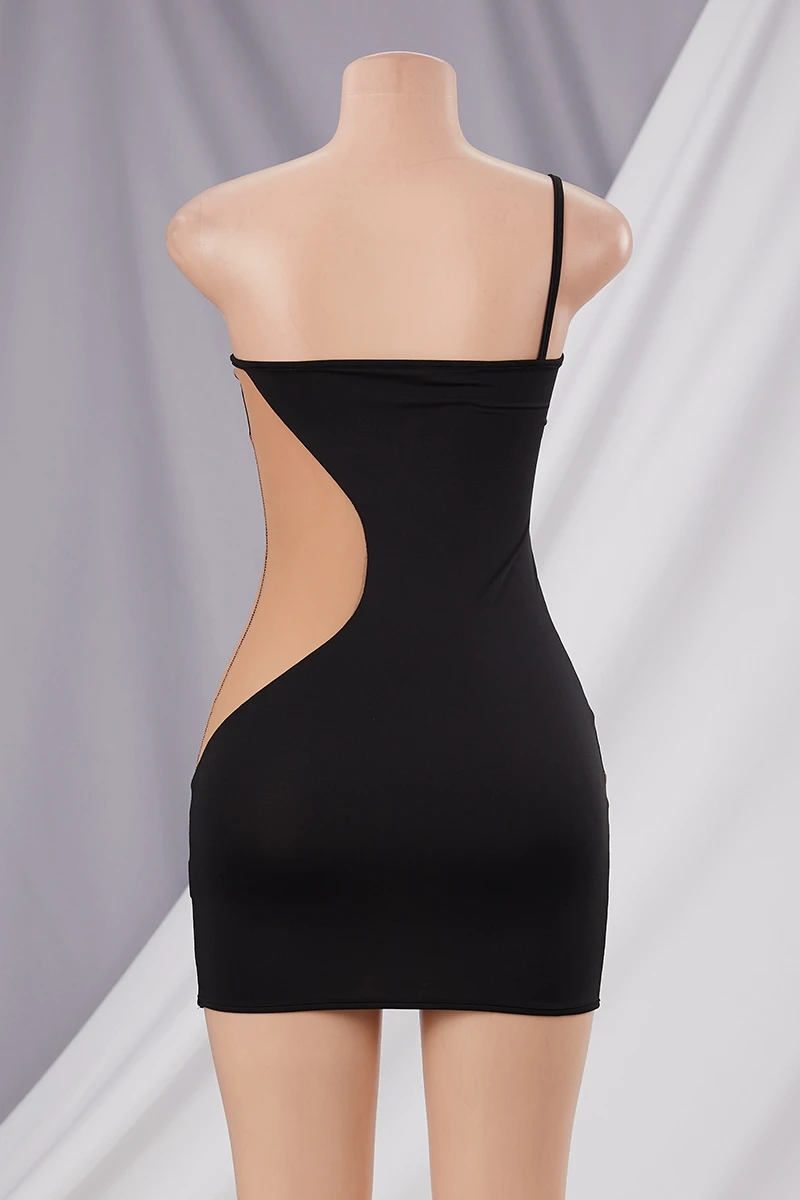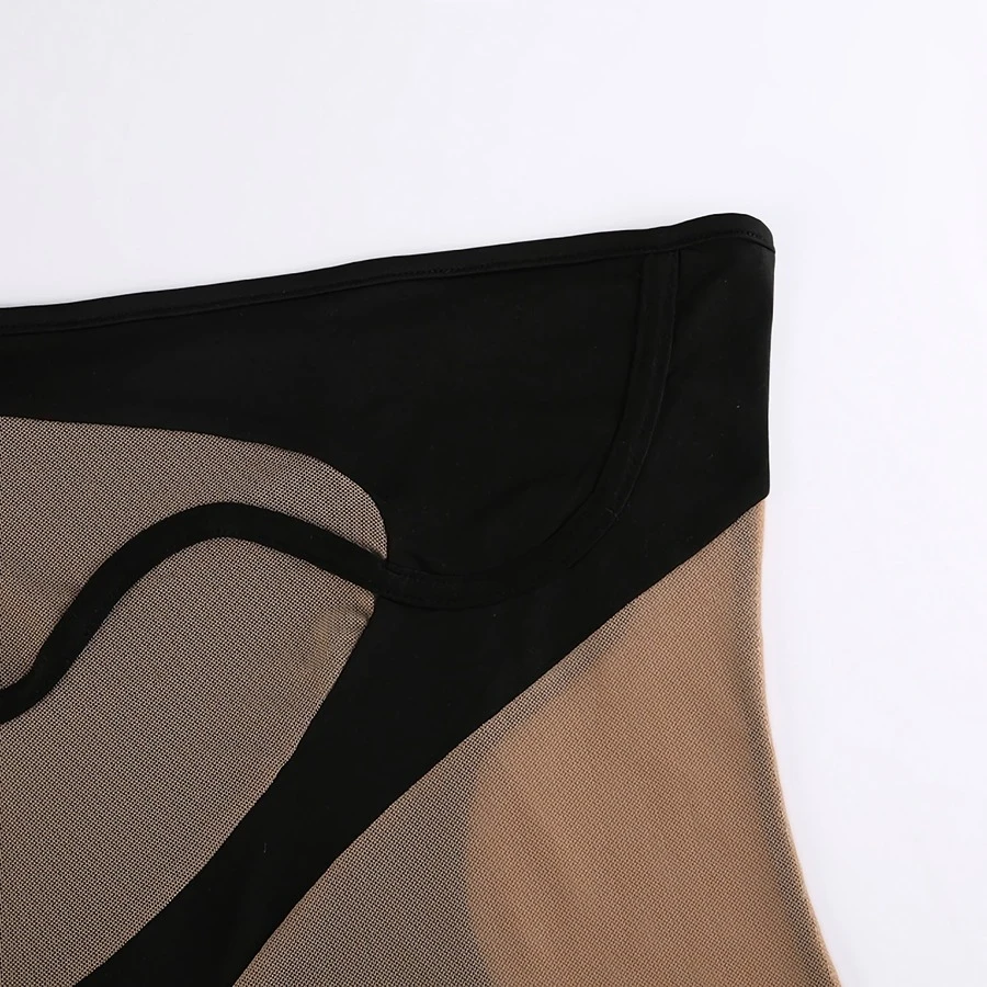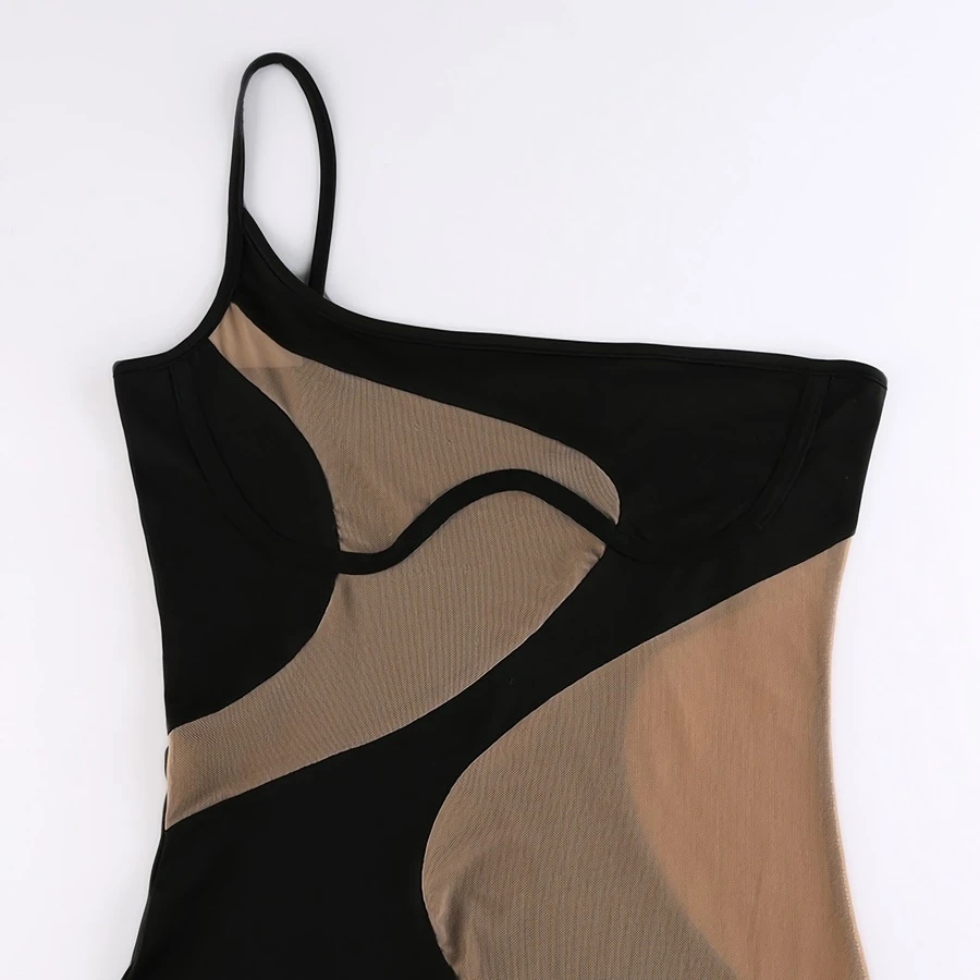 Summer new stylish mesh patchwork contrast color see-through stretch slim one shoulder sexy mini dress