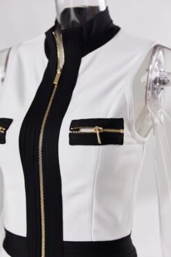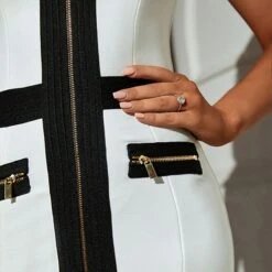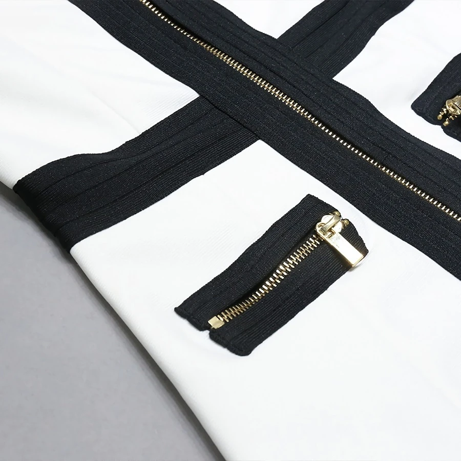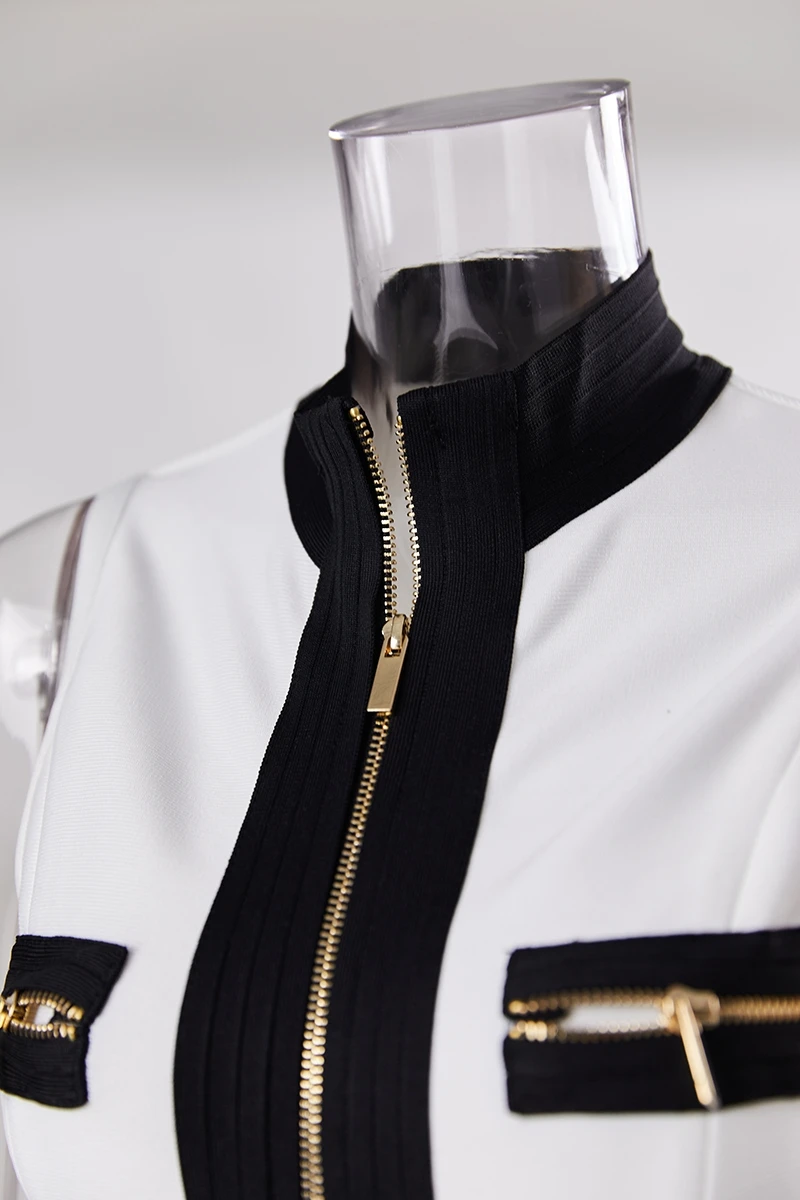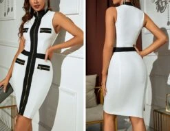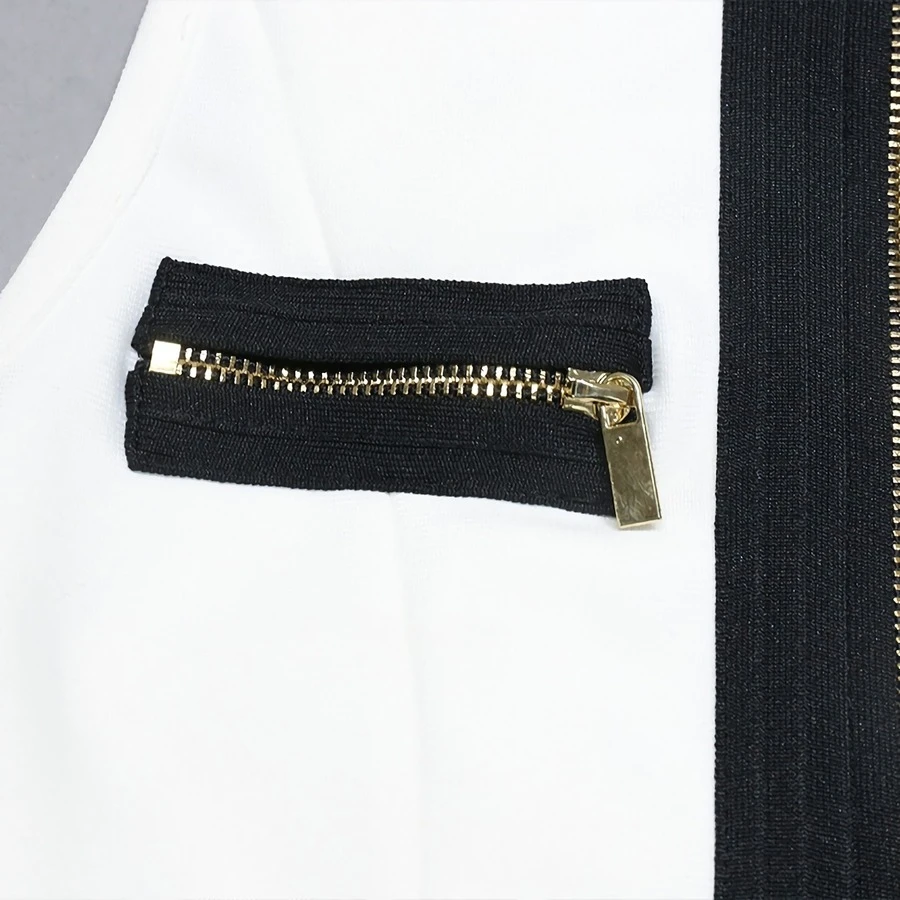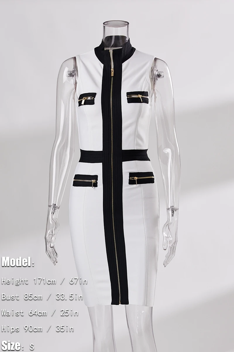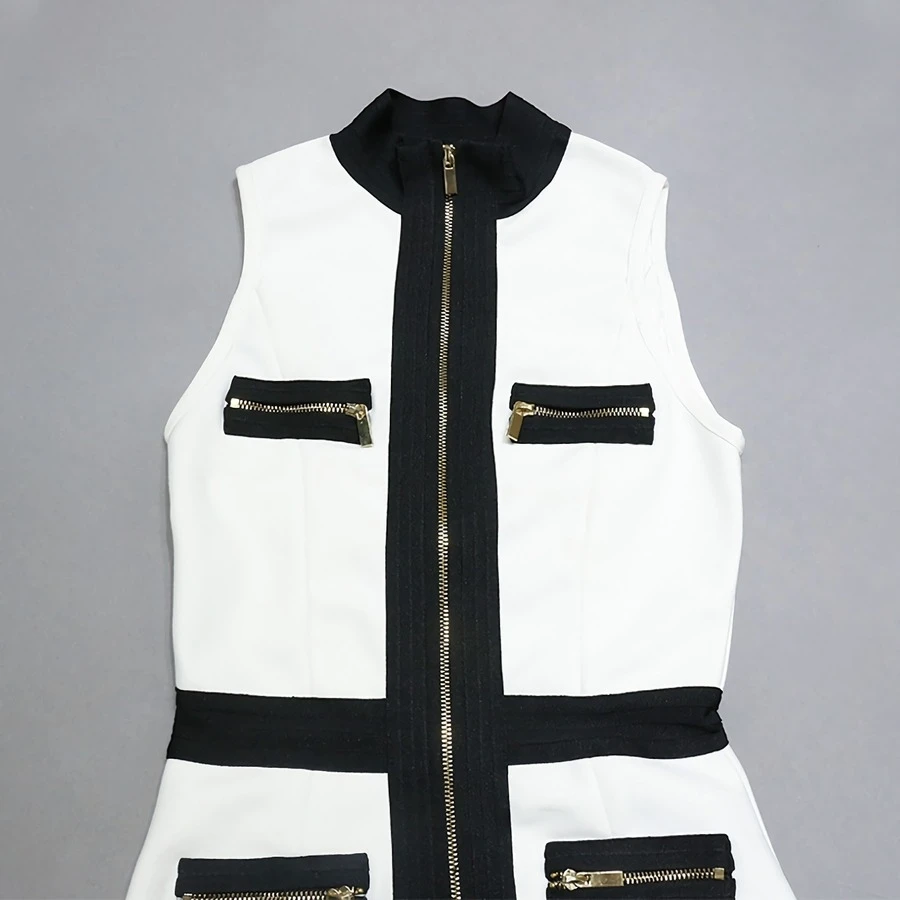 Summer new stylish patchwork contrast color slight stretch slim zip-up sleeveless high quality sexy mini dress