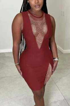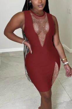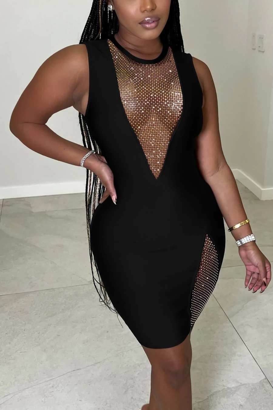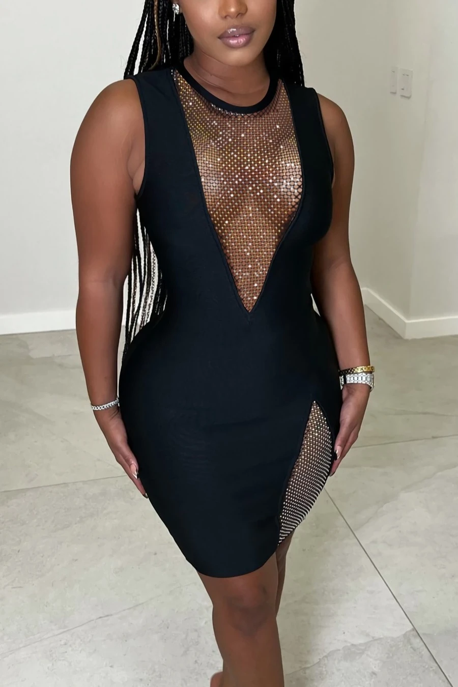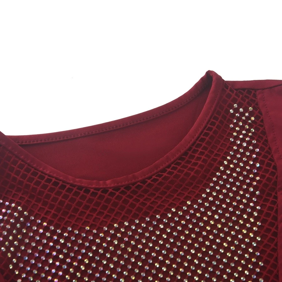 Summer new stylish patchwork see-through rhinestone slim stretch plus size sexy mini dress