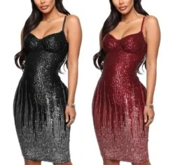 Summer new stylish plus size slight stretch zip-up sequins sling slim backless high quality sexy mini dress