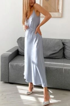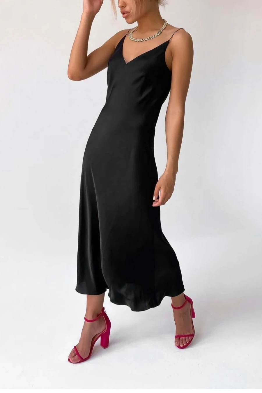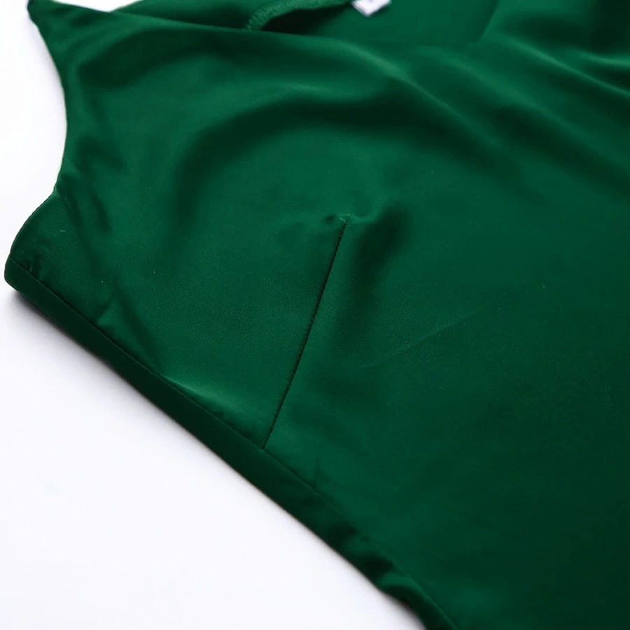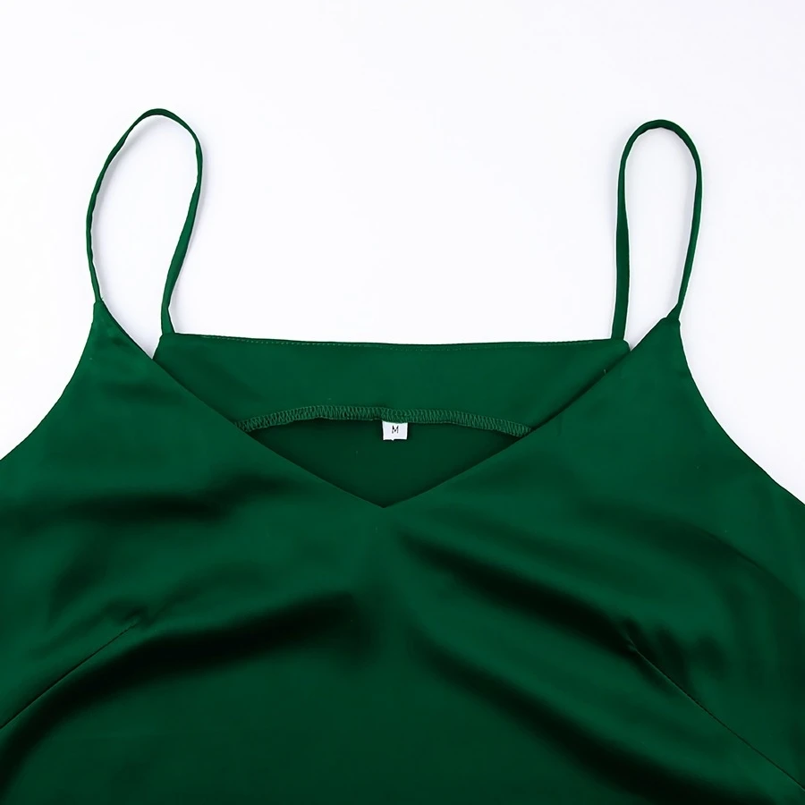 Summer new stylish seven colors solid color inelastic satin v-neck sling zip-up sexy midi dress