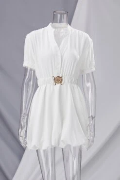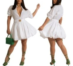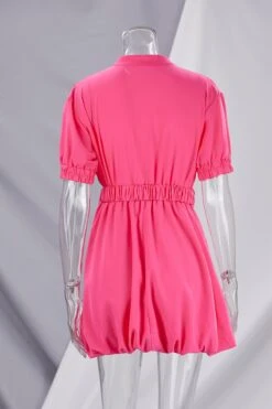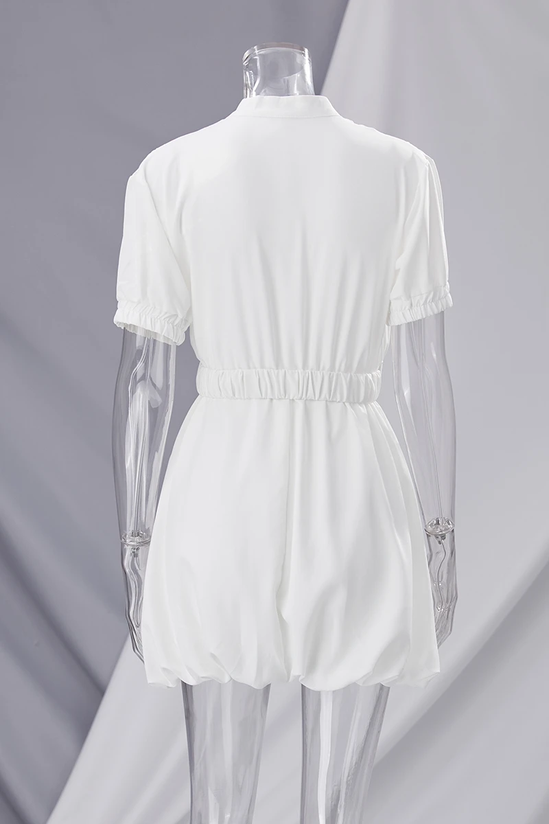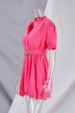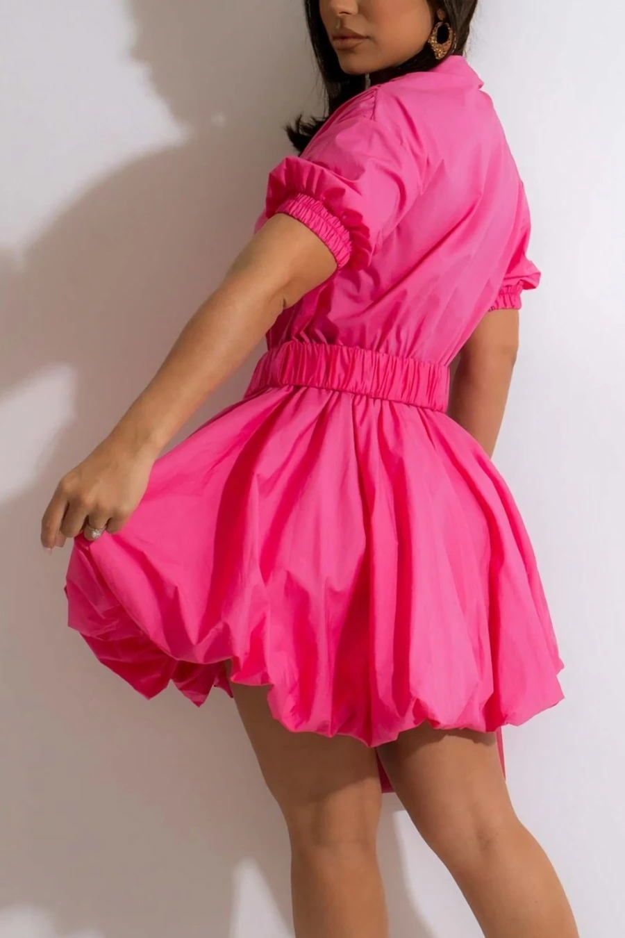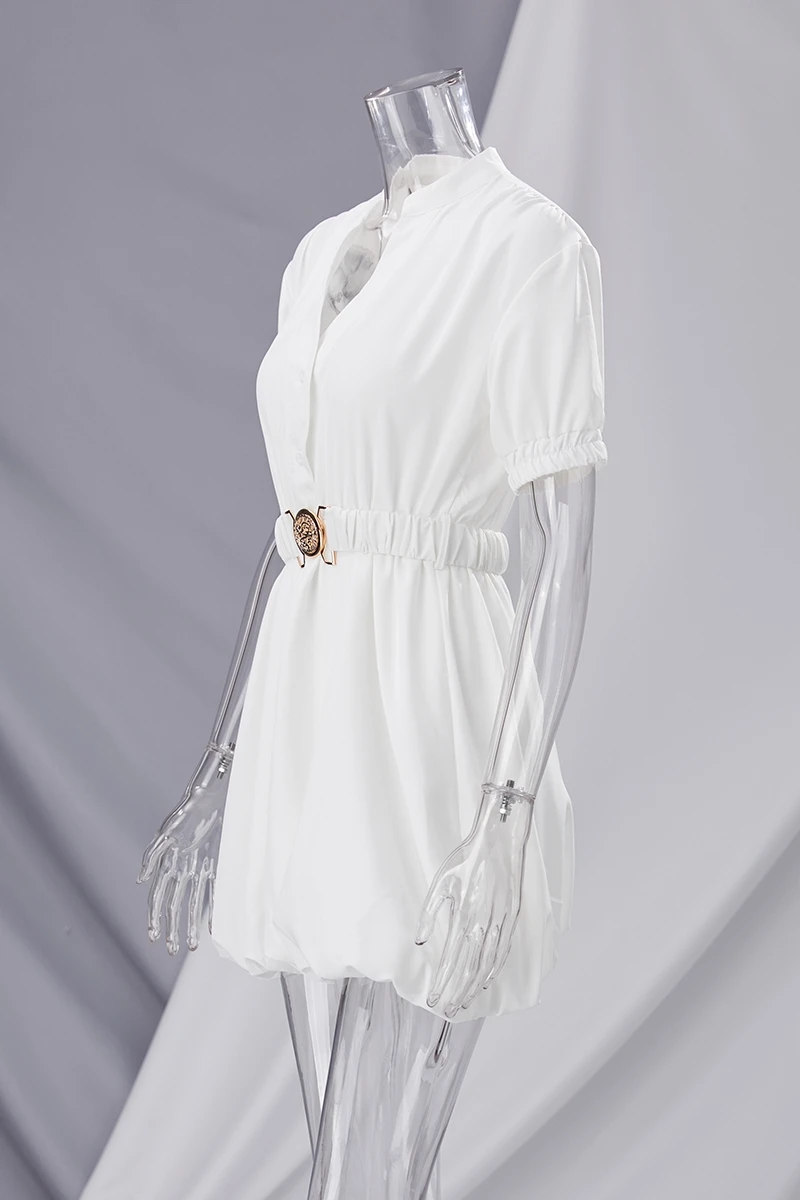 Summer new stylish simple solid color orange micro-elastic single-breasted with belt plus size casual mini dress