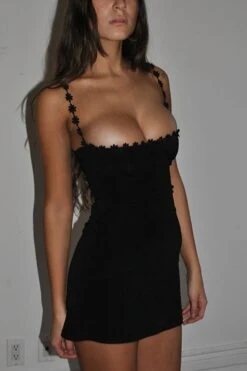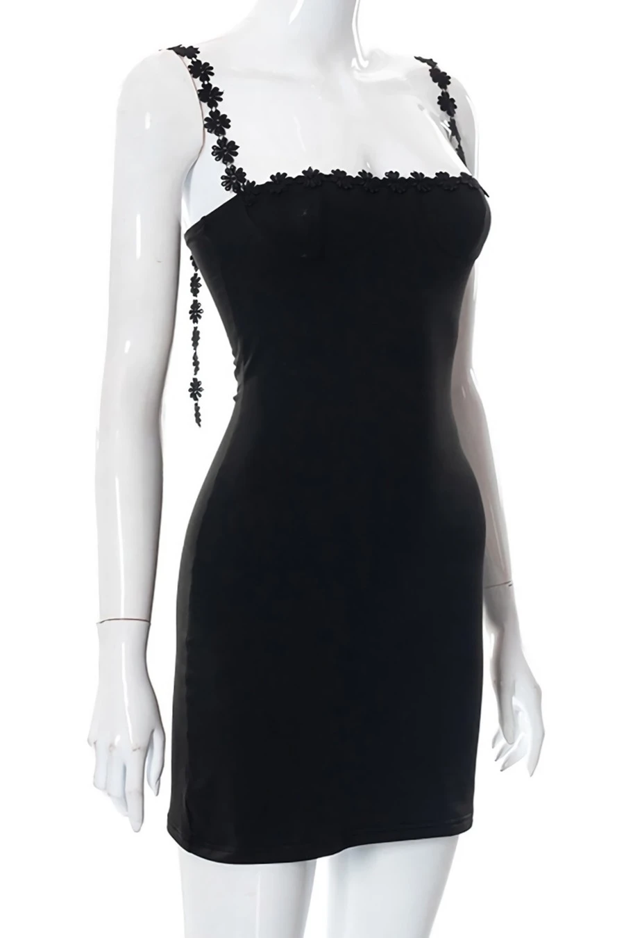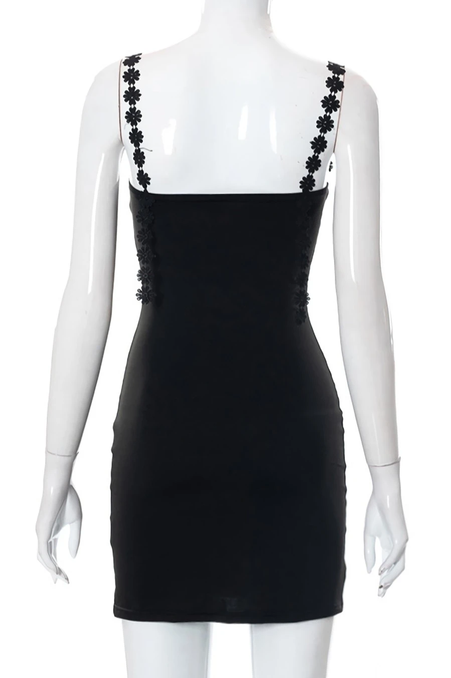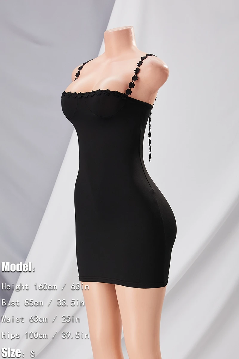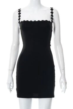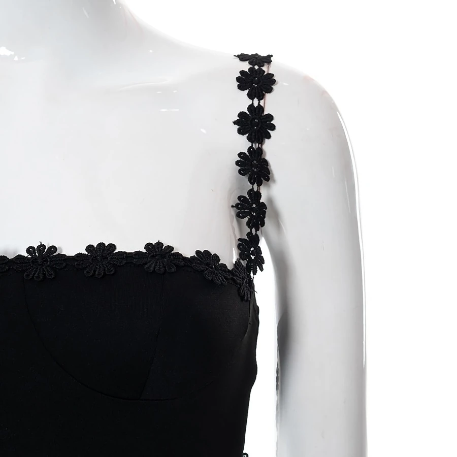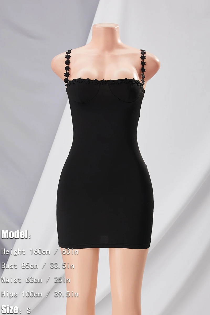 Summer new stylish solid color flower shape embroidery sling backless stretch slim sexy mini dress
