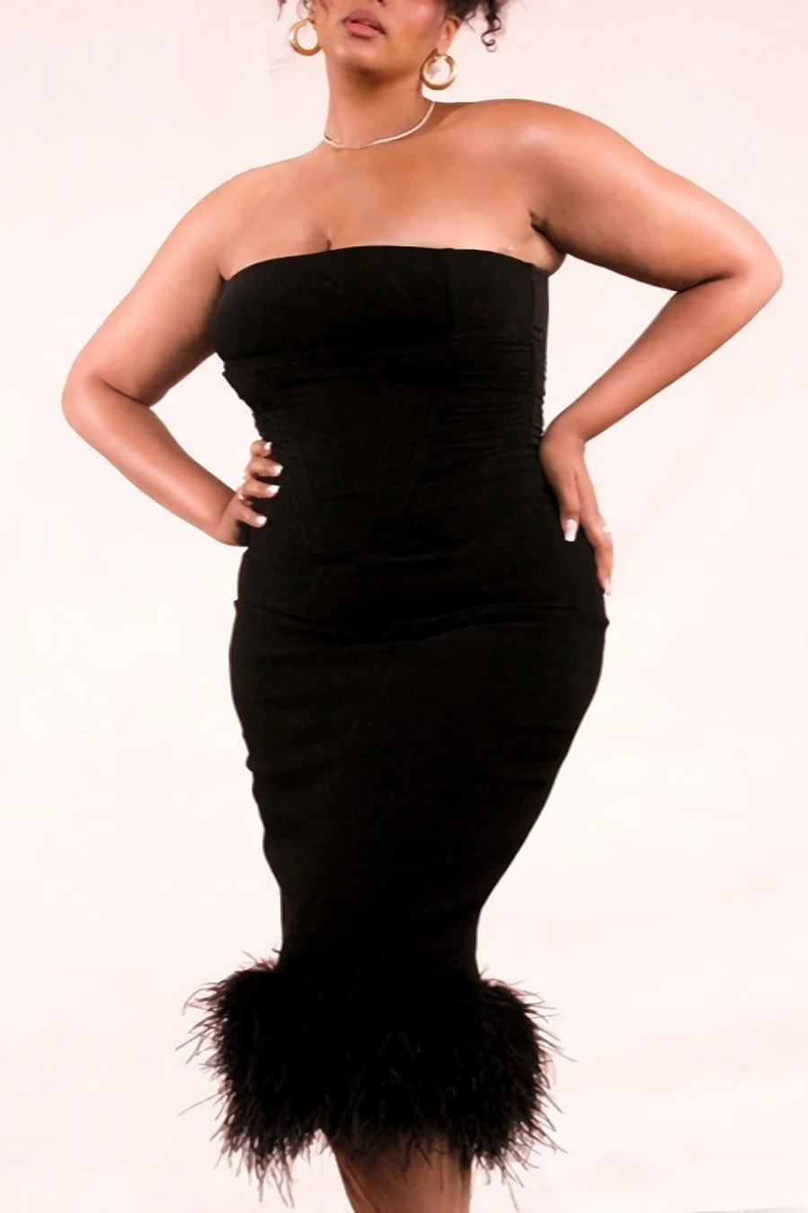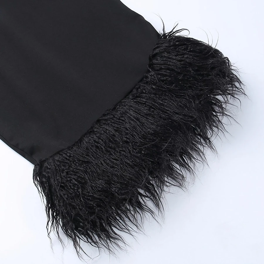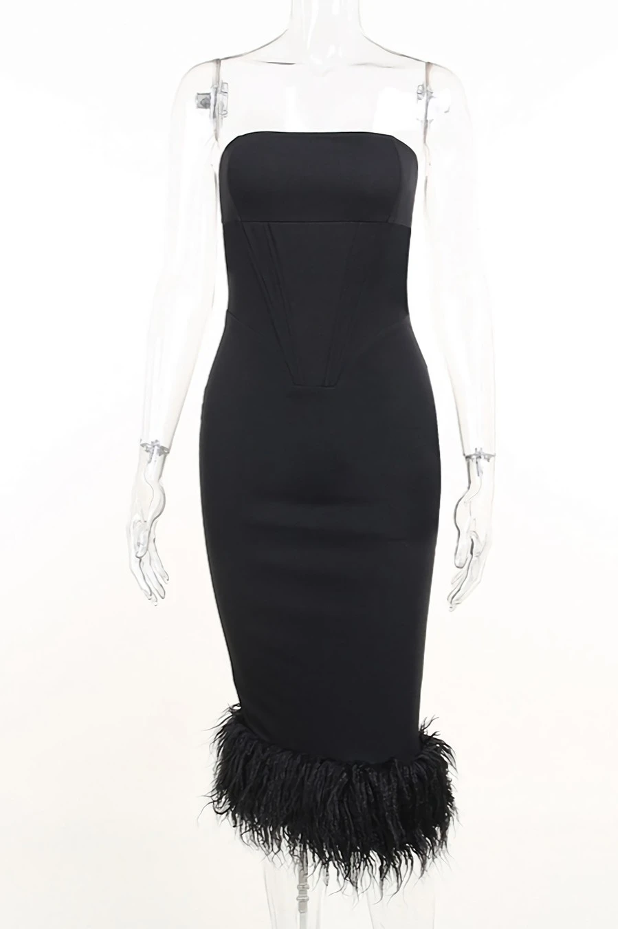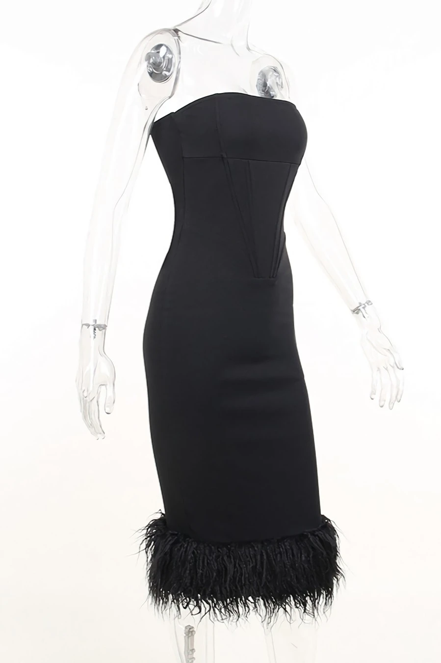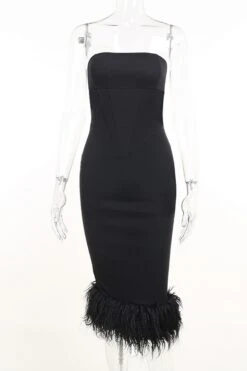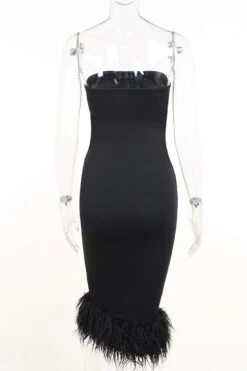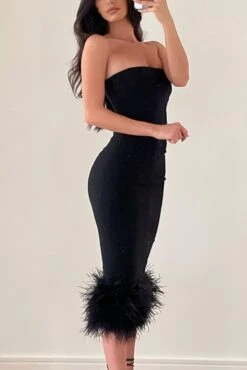 Summer new stylish strapless slight stretch slim feather patchwork sexy midi dress