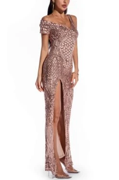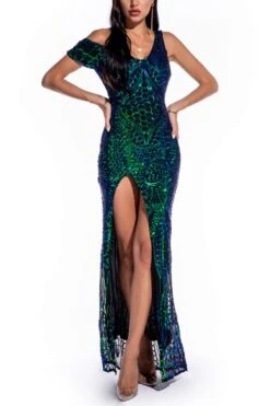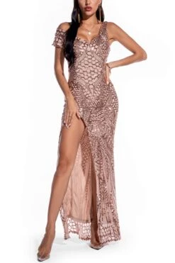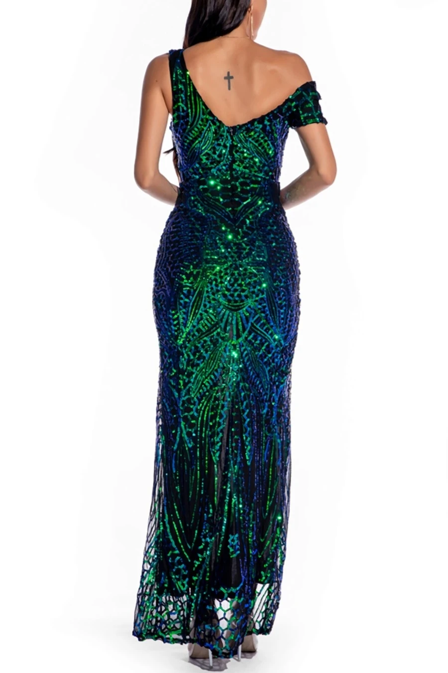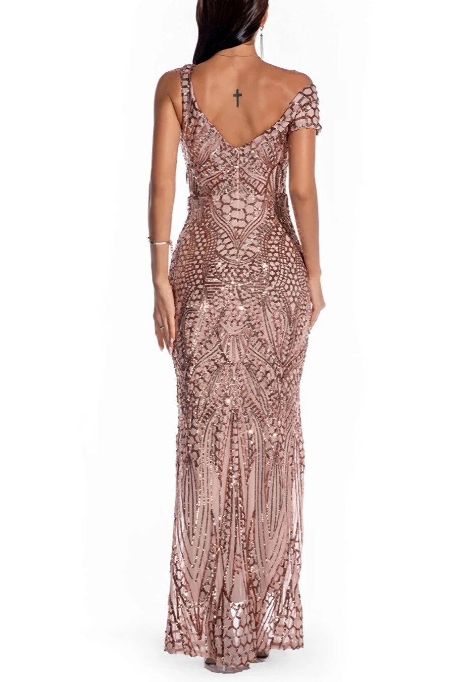 Summer new two colors sequin embroidered stretch v-neck backless high split elegant high quality maxi dress